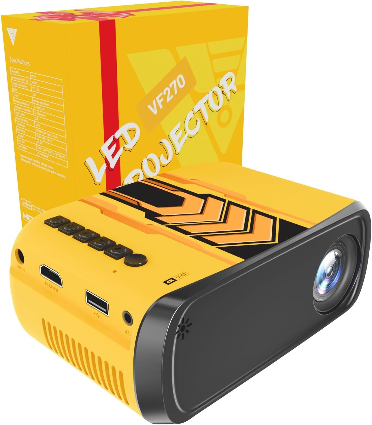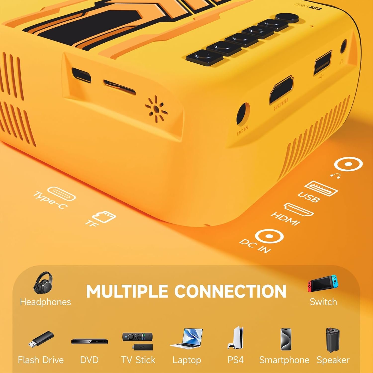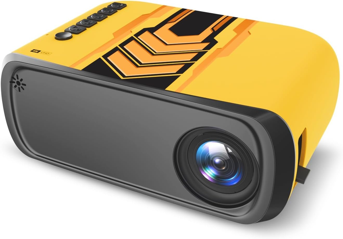 Mini Projector with Wifi Portable Projector Support 1080P 170″ Mini HD Movie Projector, Outdoor Projector Compatible with Phone/ Tablet/ Laptop/ TV Stick/ PS4/ HDMI/USB – Yellow Black