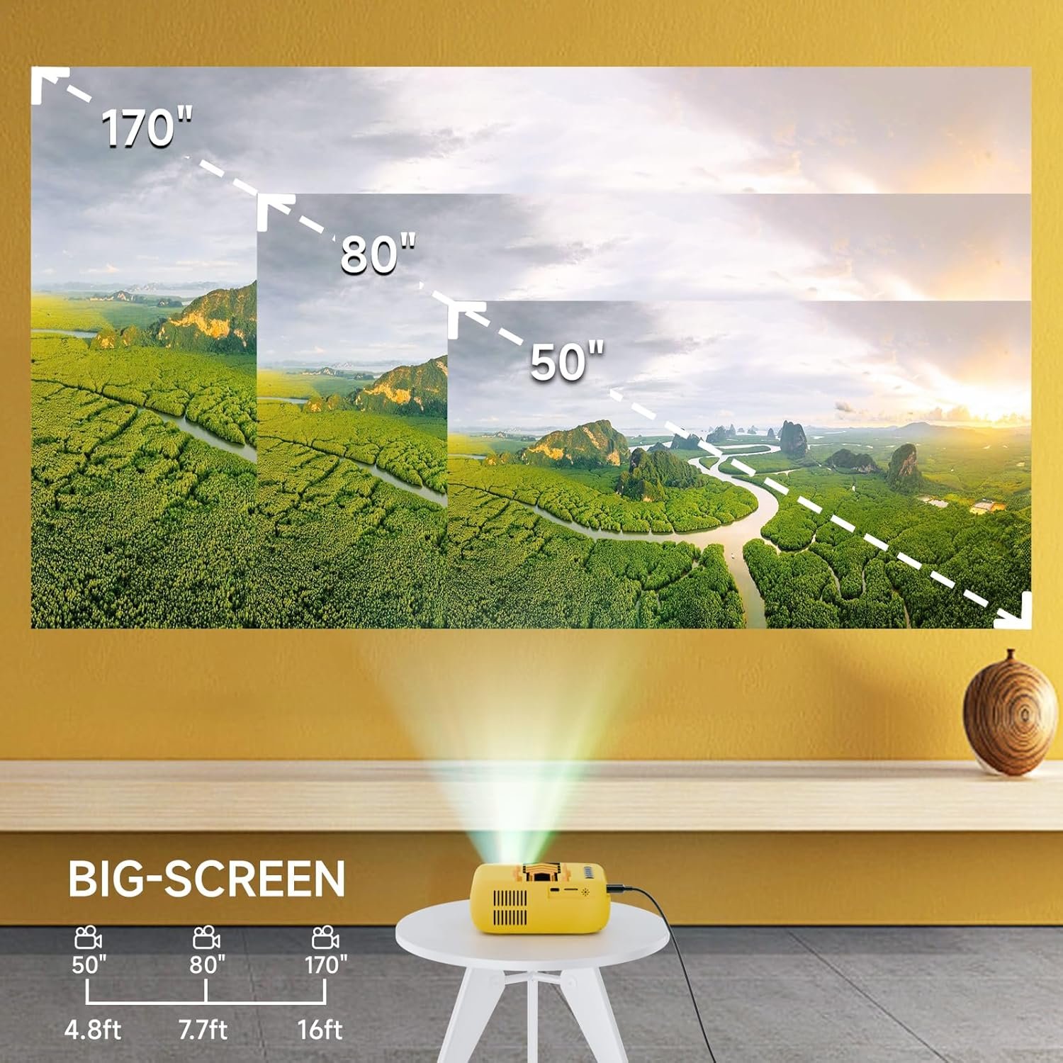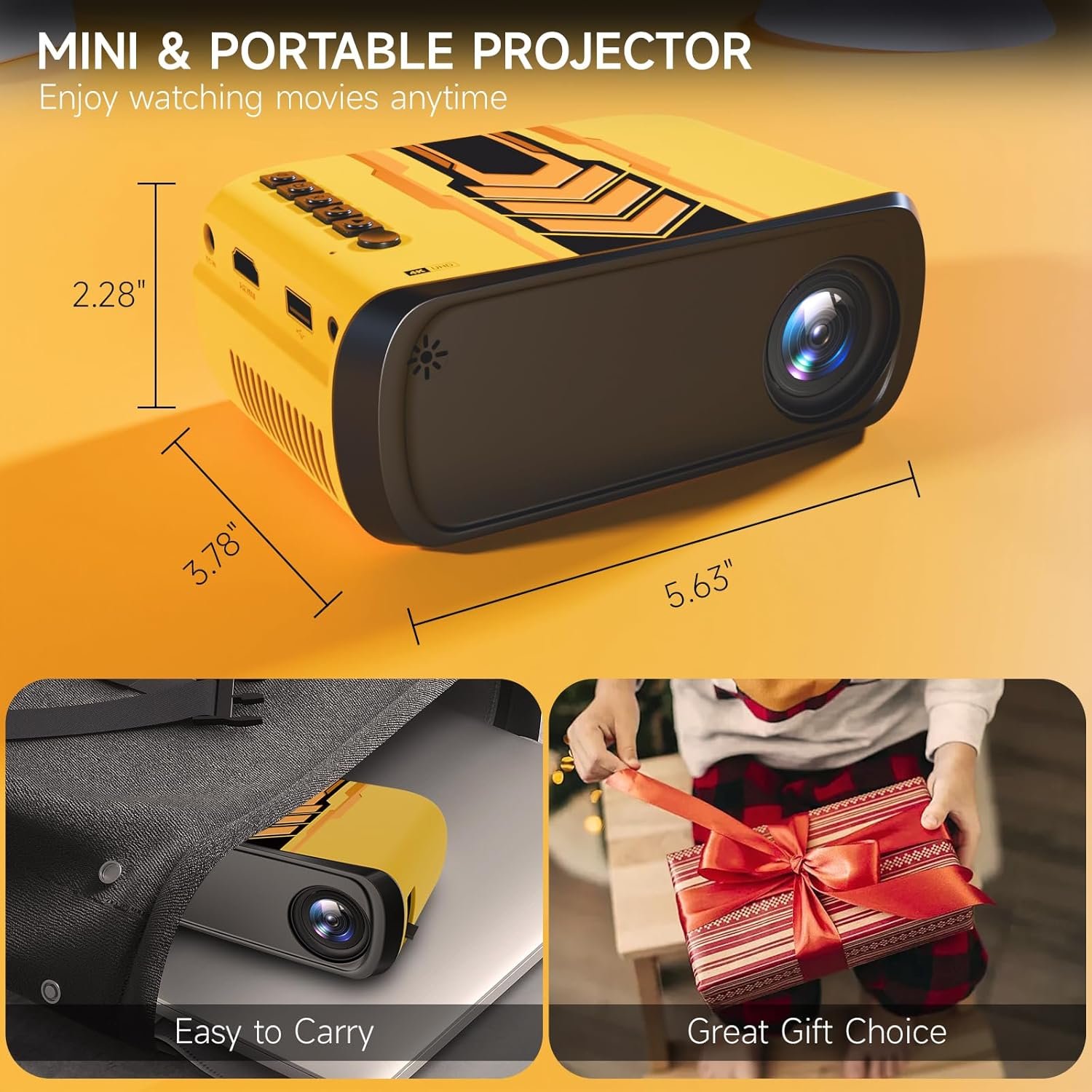 Supports 1080P Full HD Projection: This portable movie projector supports 1920*1080P resolution with 22-170 inch screen displays. Native Resolution is 800*480,Whether indoors or outdoors, it delivers a cinematic experience with lifelike, dynamic and colorful projected image quality. The perfect gift for family and friends!