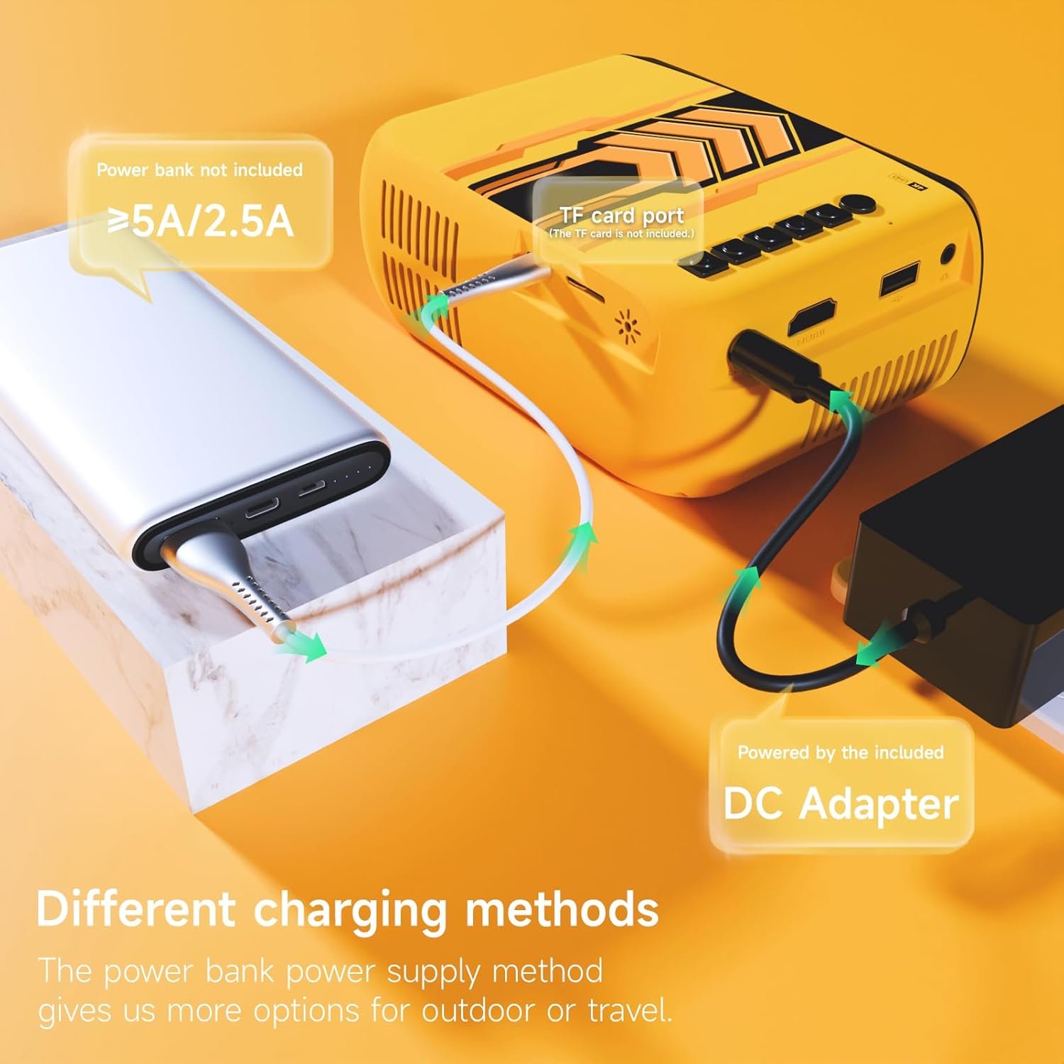 Portable Movie Projector: With its small size (5.63 * 3.78 * 2.28 inches) and weight of just 0.75 pounds, the pocket outdoor projector can be packed in your bag and carried around with you. And with support for DC power and charging modes, it can be powered by a mobile phone charger, car charger or via the Micro-USB port (5V / 2A support required). Let you build your own home theater as you wish and enjoy movie nights with family and friends.