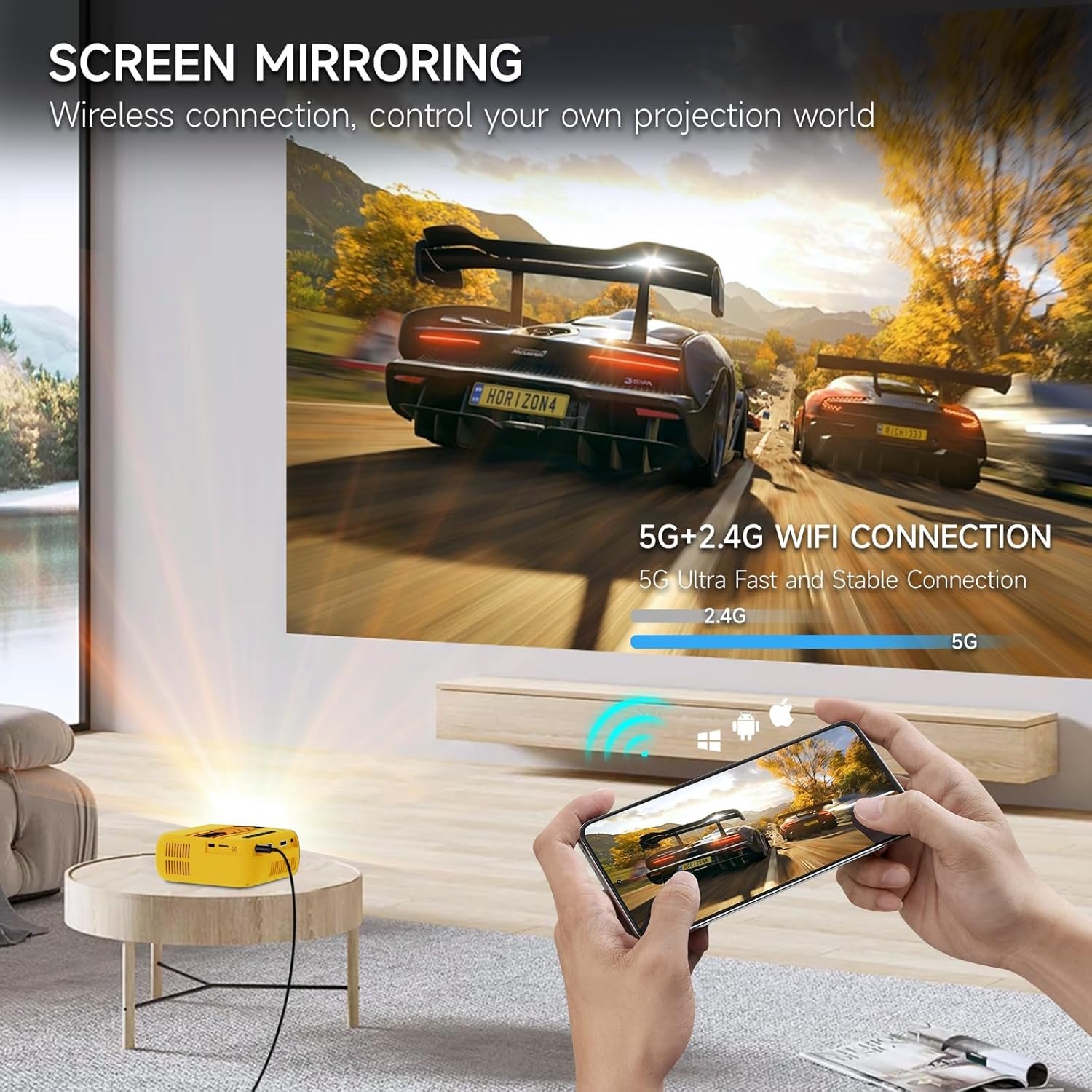 WiFi Connectivity and Screen Mirroring: The Mini Projector supports WiFi wireless connectivity and is compatible with Android / iPhone / Windows, free from cable restrictions. When a Wi-Fi environment is not available, you can easily connect the WiFi projector to your device using the Lightning/USB/Type-C to HDMI adapter (not included).