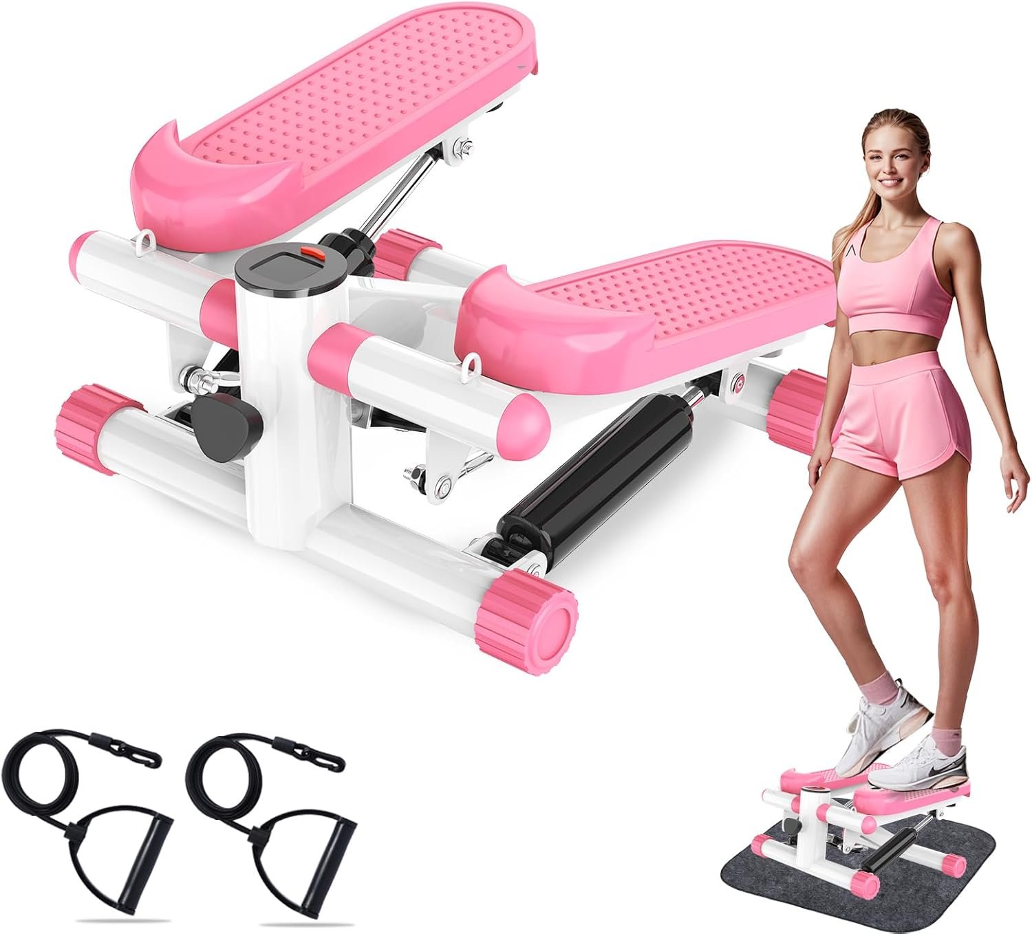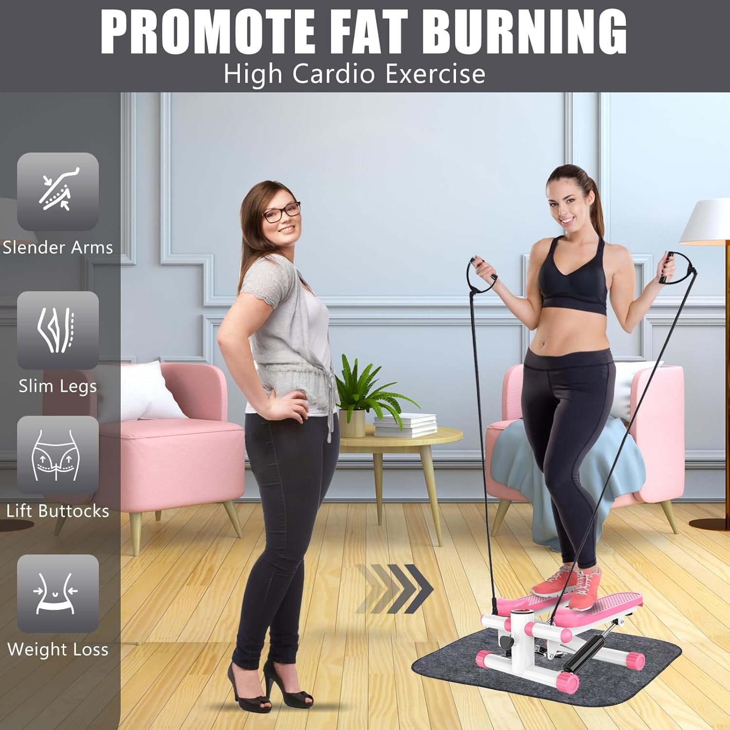 【10 Mins Full-Body Fast Fat-Burning 】SWITMH mini stepper with resistance bands provides a challenging cardiovascular workout by simulating the motion of climbing stairs while also protecting your knee joints. Combined with resistance bands, the stair stepper can effectively perform full-body exercises on calves, thighs, buttocks, abdomen, back, arms, shoulders, etc., helping you build a strong and toned body.
