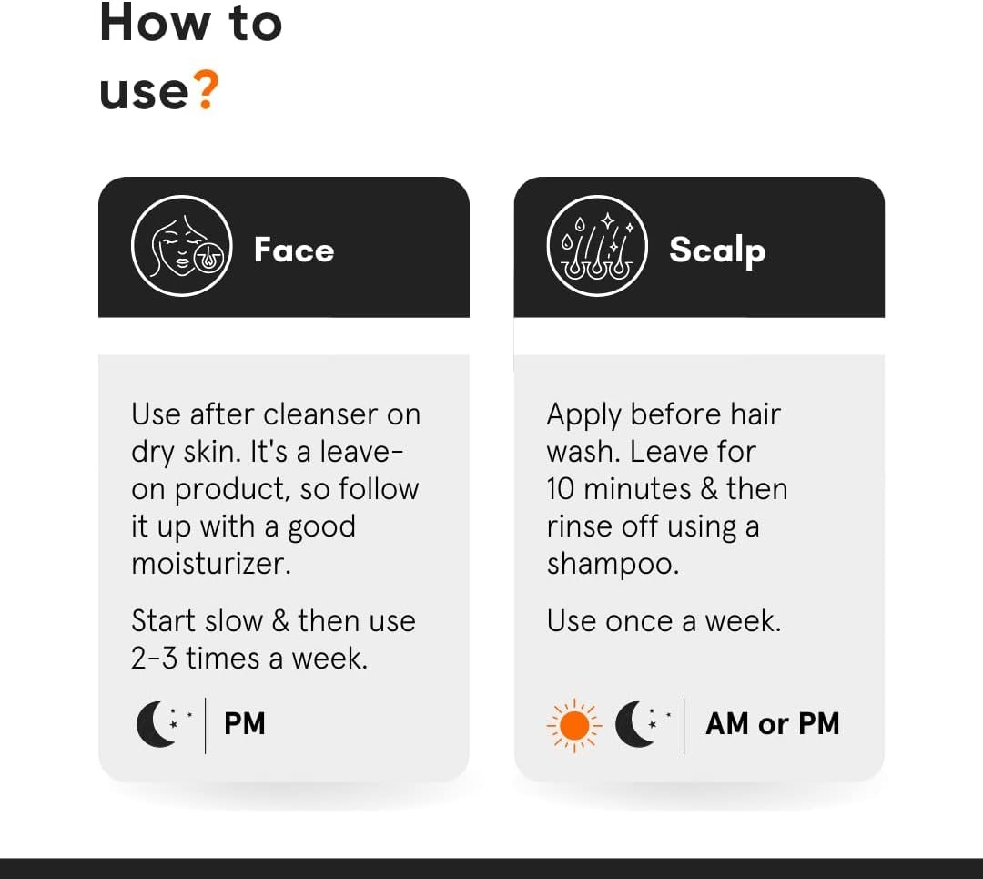 When to use: PM. Start with twice a week, & gradually increase frequency. Do not use more than once a day.