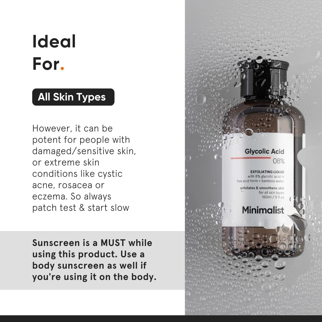A multi-purpose exfoliator formulated with Glycolic Acid in free acid form (at 8%) to help in natural cell turnover and effective exfoliation. Combined with bamboo water for hydrating and soothing skin.