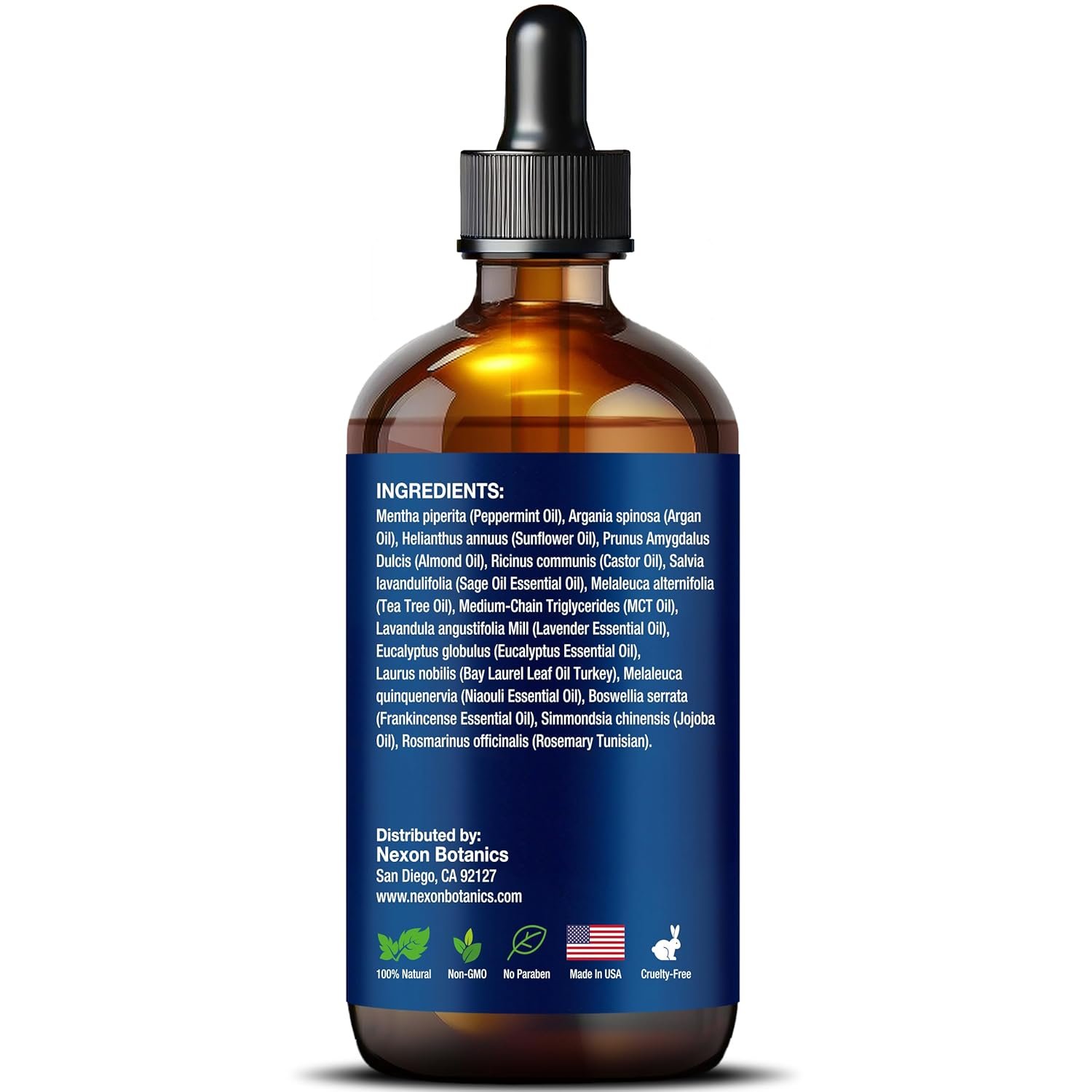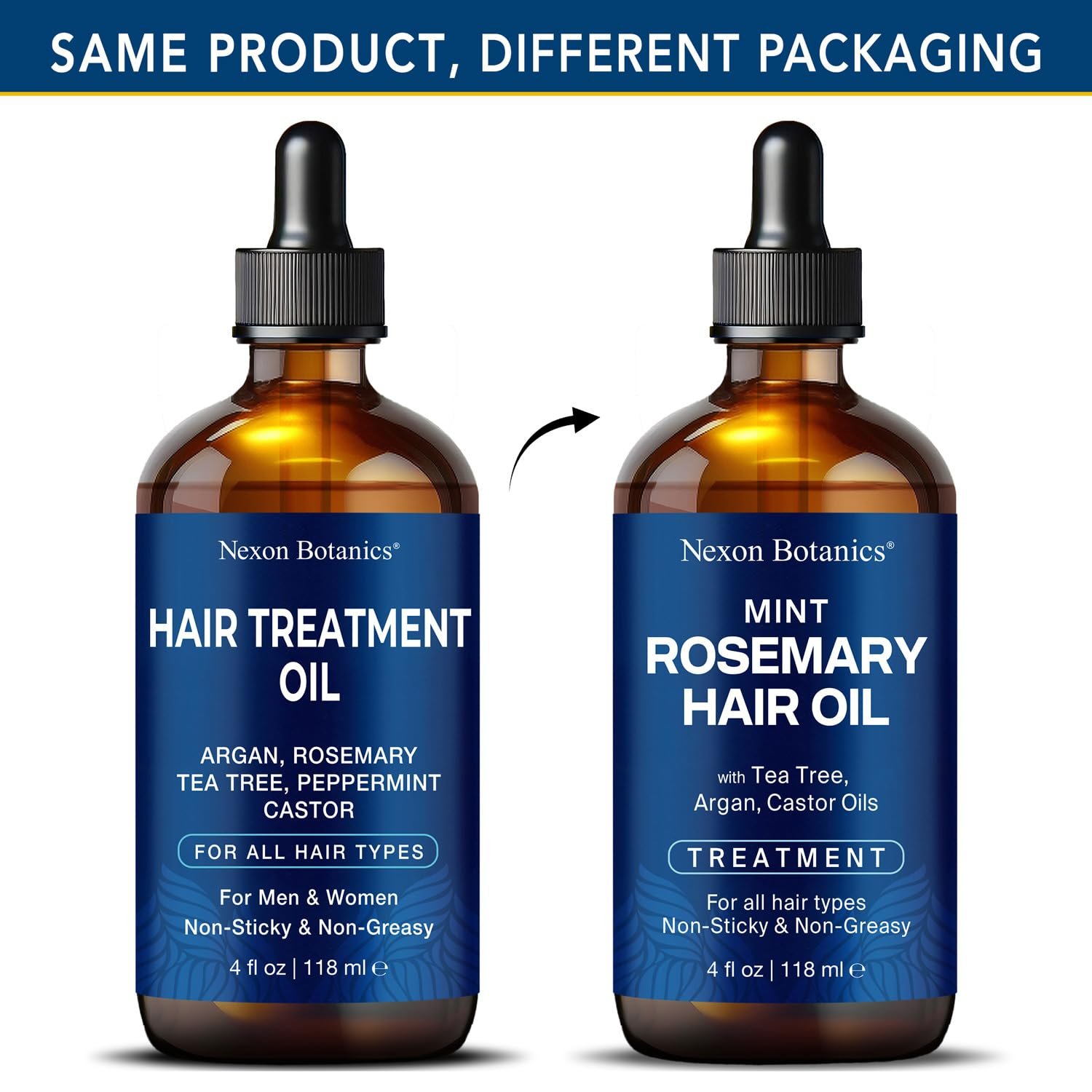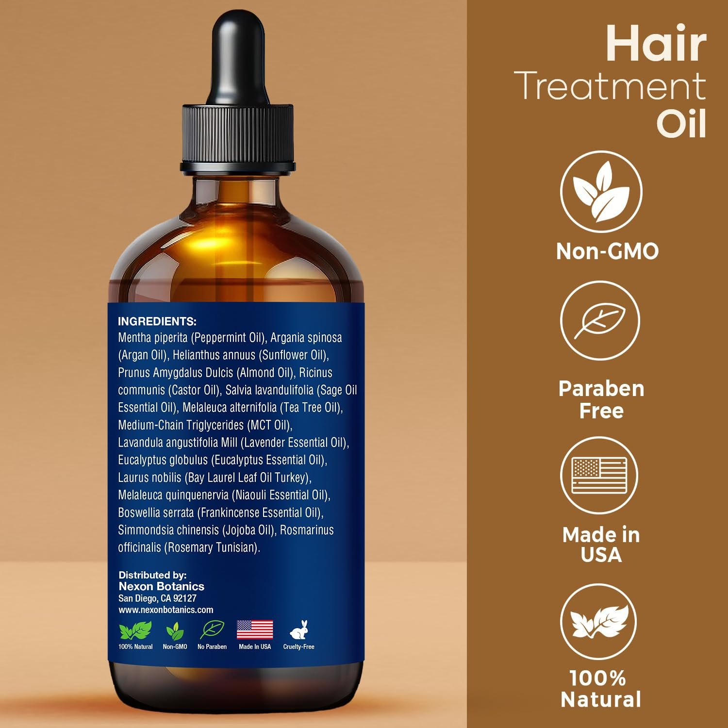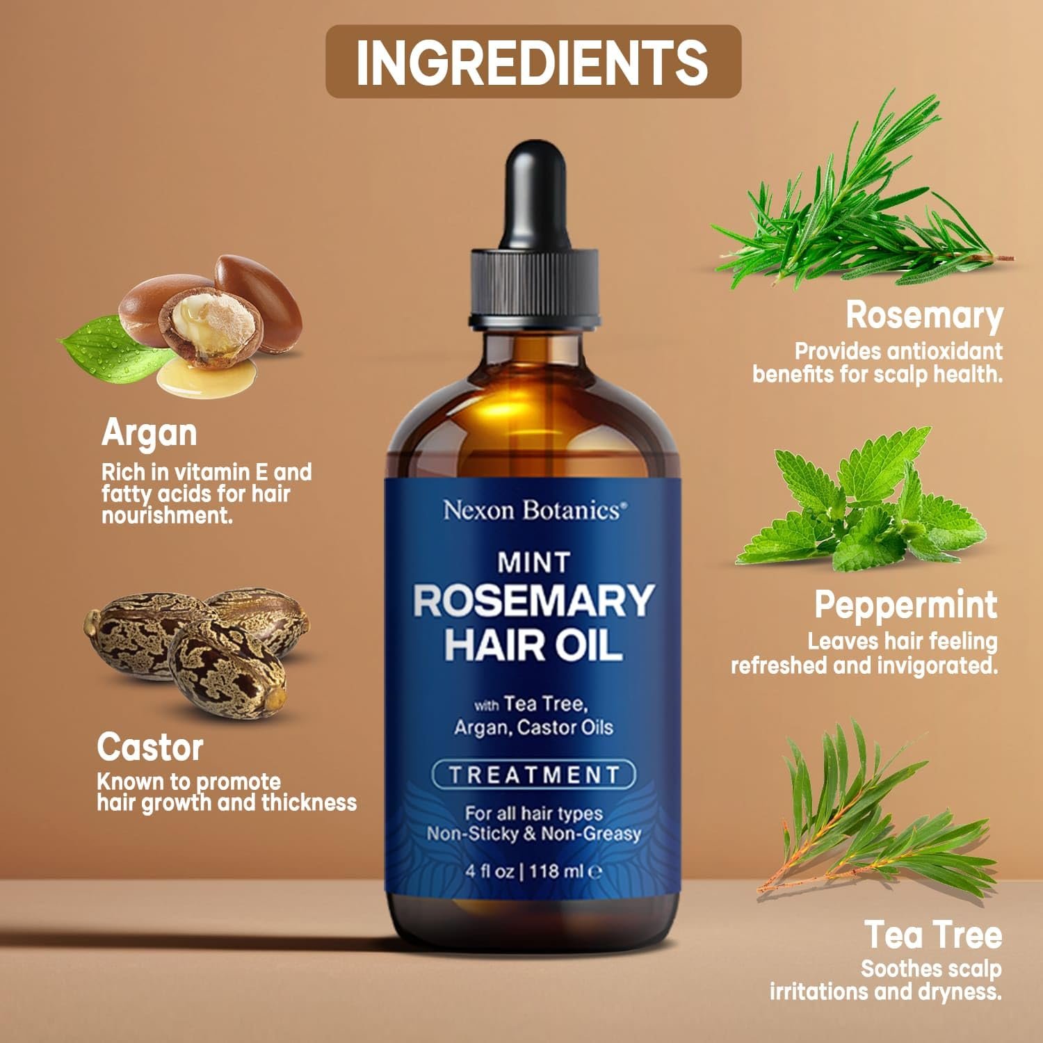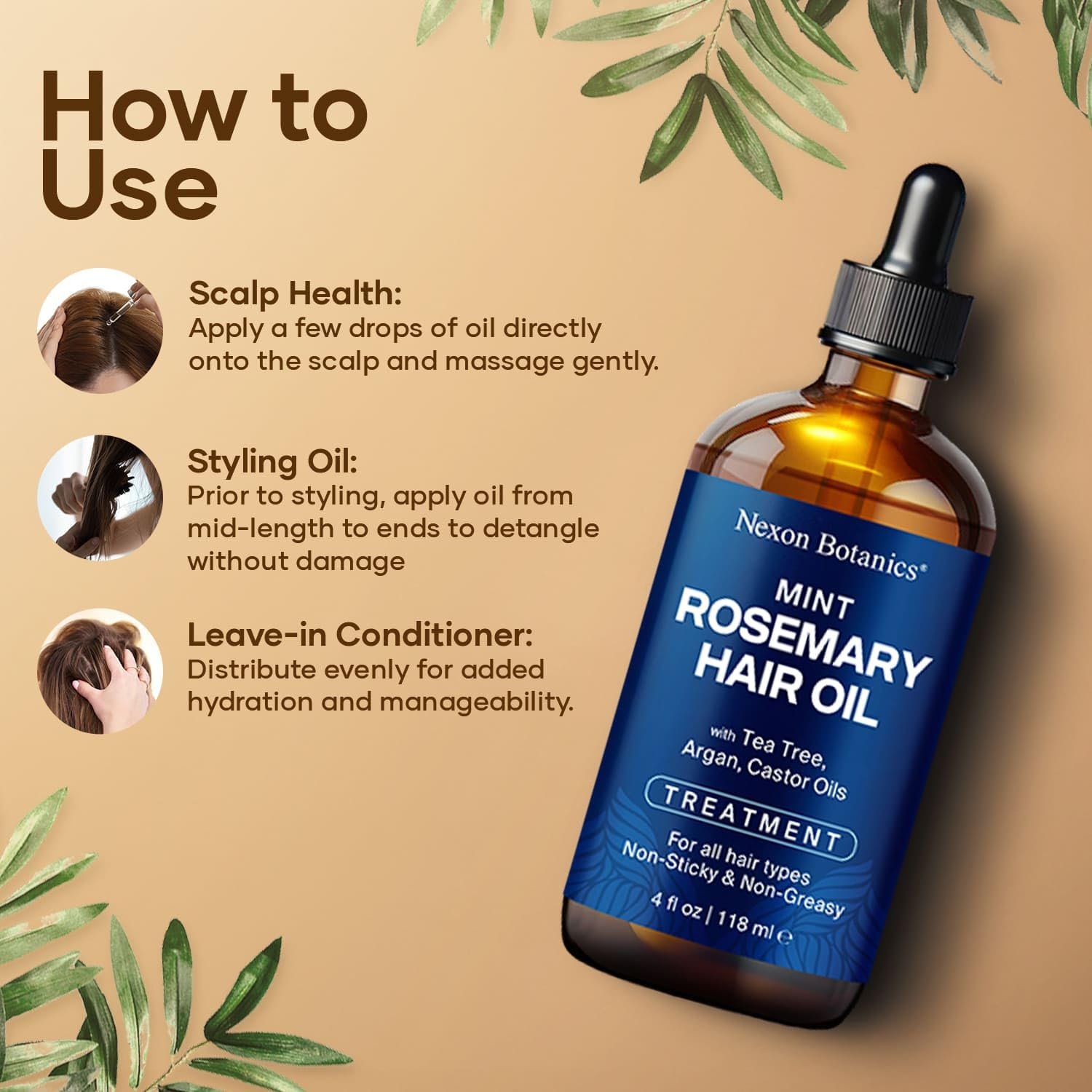 Mint Rosemary Hair Oil 4 fl oz – Hair Treatment Oil – Argan, Castor, Tea Tree – Hair Growth Oil for Damaged Hair, Curly Hair, Frizzy Hair, Dry Scalp – Men and Women – Nexon Botanics