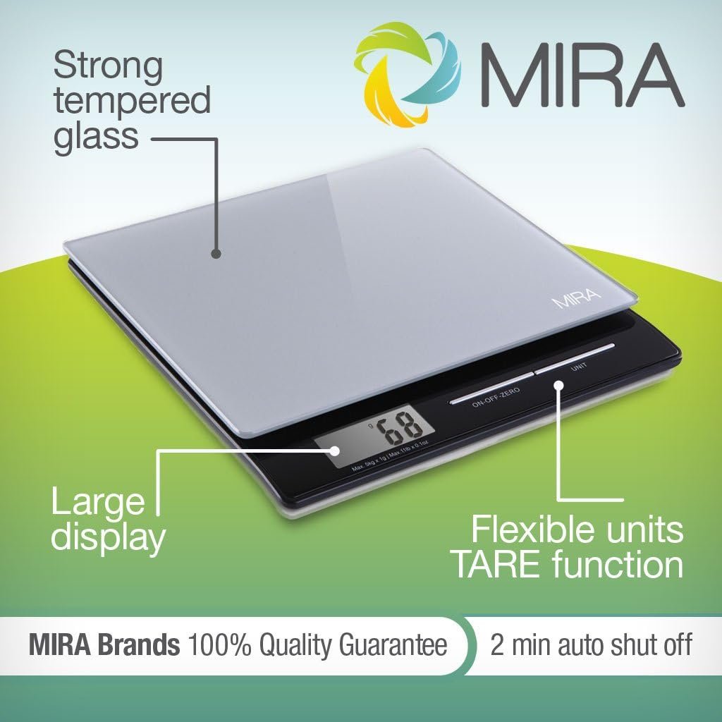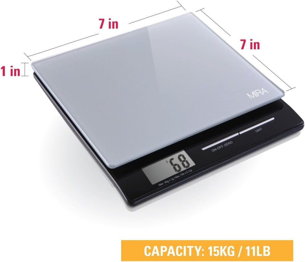 Portion Control: Trying to shed those few unwanted pounds? It’s all about portion control. The MIRA digital kitchen scale makes it easy to measure out your food portions. It’s flat weighing table makes it easy to weigh bowls or plates of food. Regardless of your weighing needs, the MIRA food scale is certain to rise to the occasion.