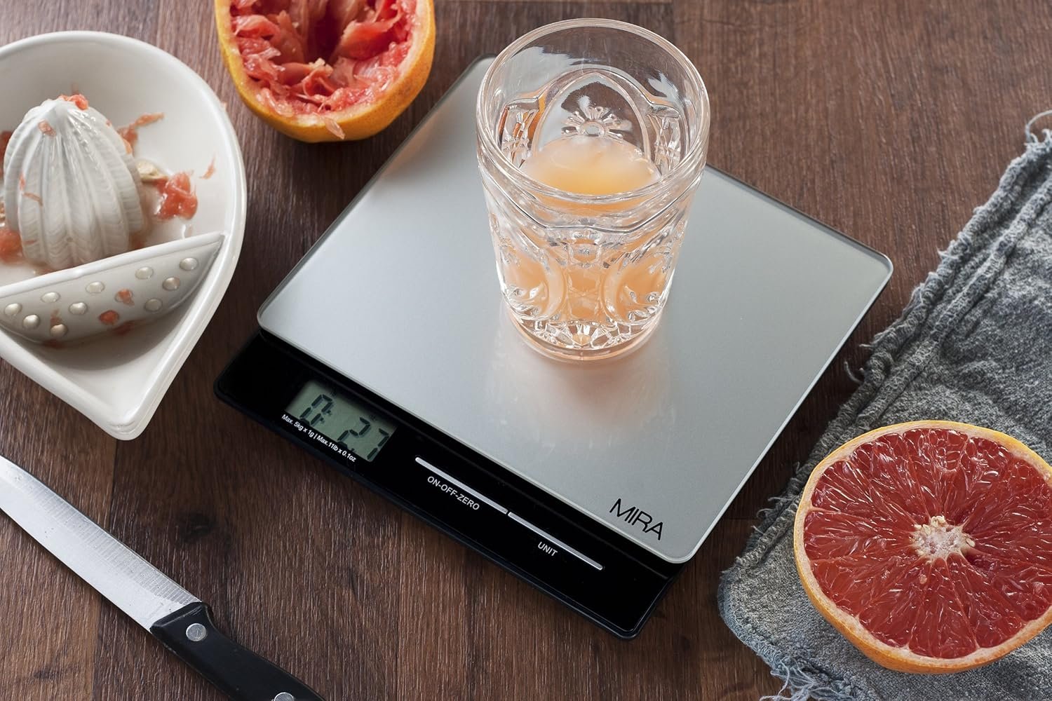 Digital Display: The MIRA digital kitchen scale has a large, easy to read display. This multifunctional food scale offers three weighing options: grams, pounds, and ounces.