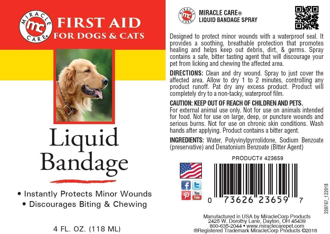 Protects minor wounds with a easy to apply waterproof seal. Provides soothing, breathable protection that promotes healing. Contains a bitter agent to help discourage licking. Note: This product is designed to help protect and heal minor wounds. In order for this product to work how intended, the wound must be clean and dry, with all bleeding stopped. Once the wound is clean and dry, this product can be used on wound. Must allow 1-2 minutes for liquid to dry completely in order to create bond.