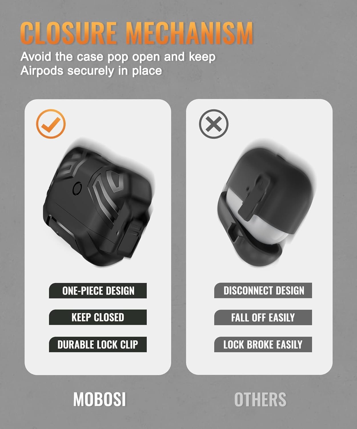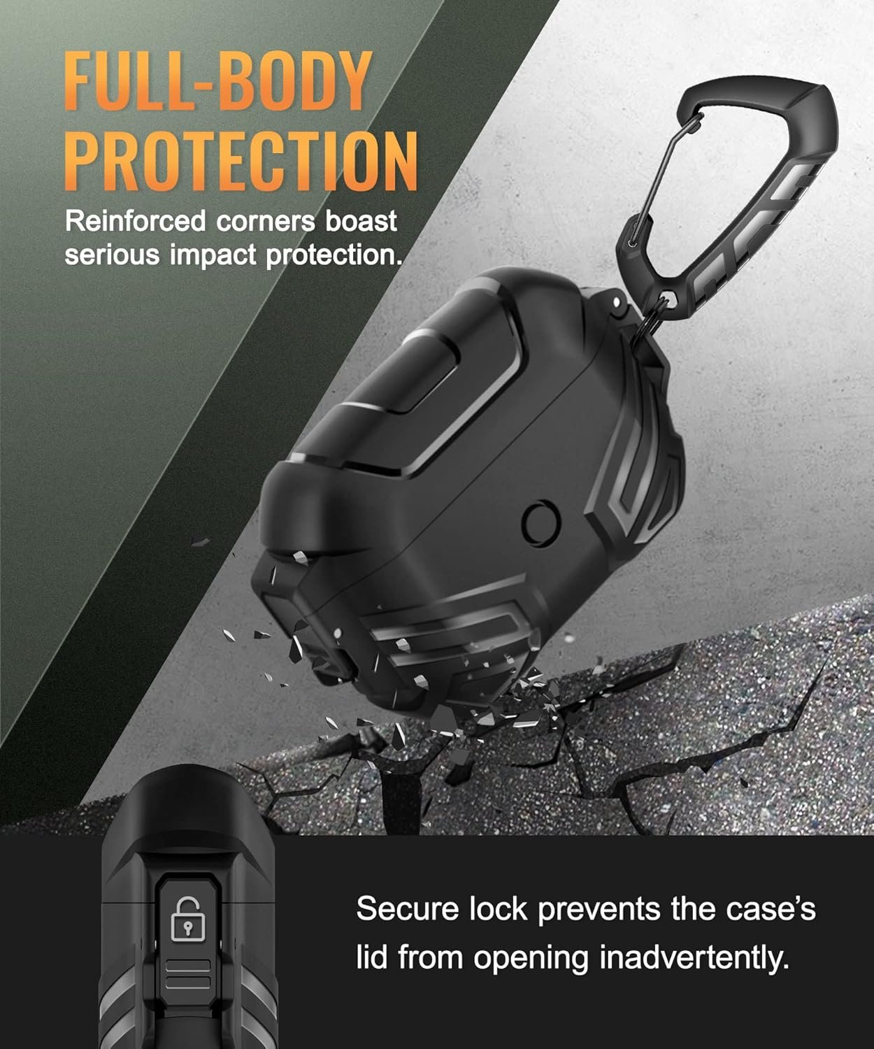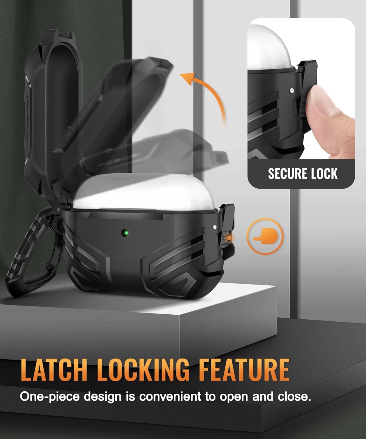 [Secure Locking Design] The Airpods Pro 2nd/1st case with locking function keep your AirPods Pro close all the time, no need to worry about losing earbuds when dropped. Quick-release spring-lock allows easy access to your AirPods Pro, and the one-piece design keeps the top cover no longer fall and lose.