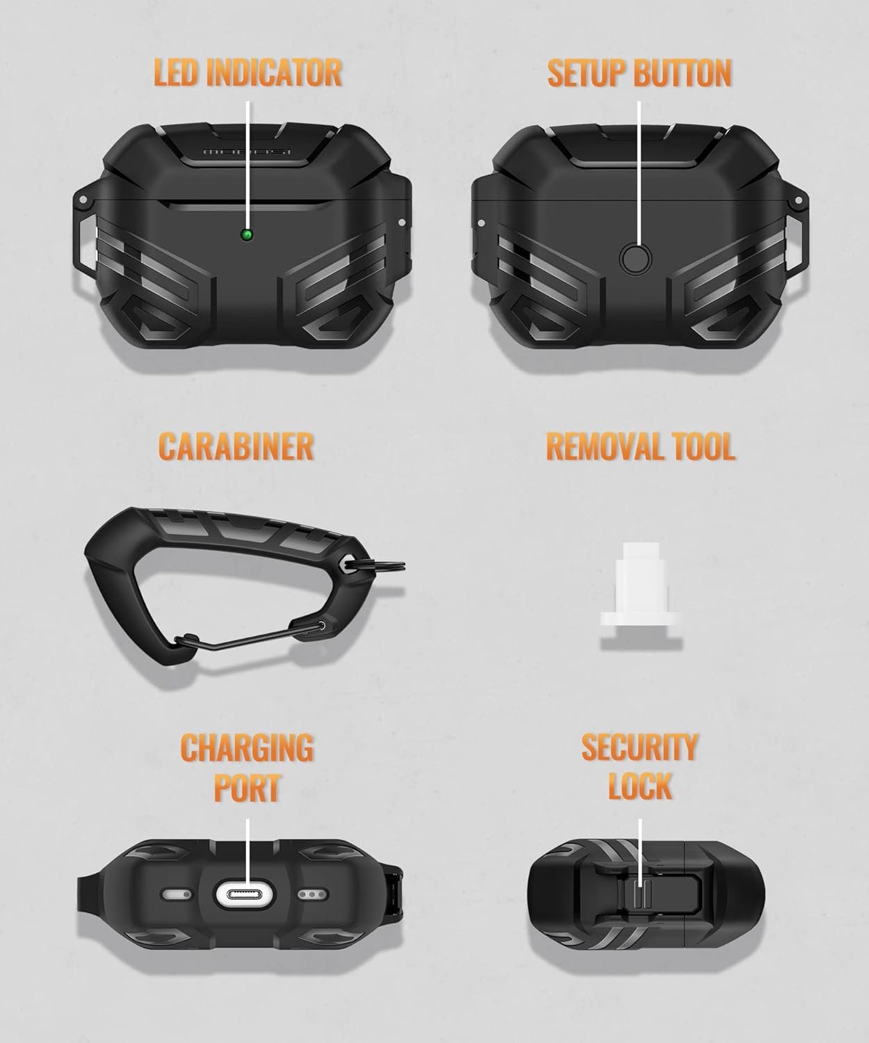 [Package Included] 1* AirPods cover for AirPods Pro 2nd/1st Generation, 1*Carabiner and 1*Removal Tool. (AirPods Pro 2nd/1st Charging Case NOT included.)