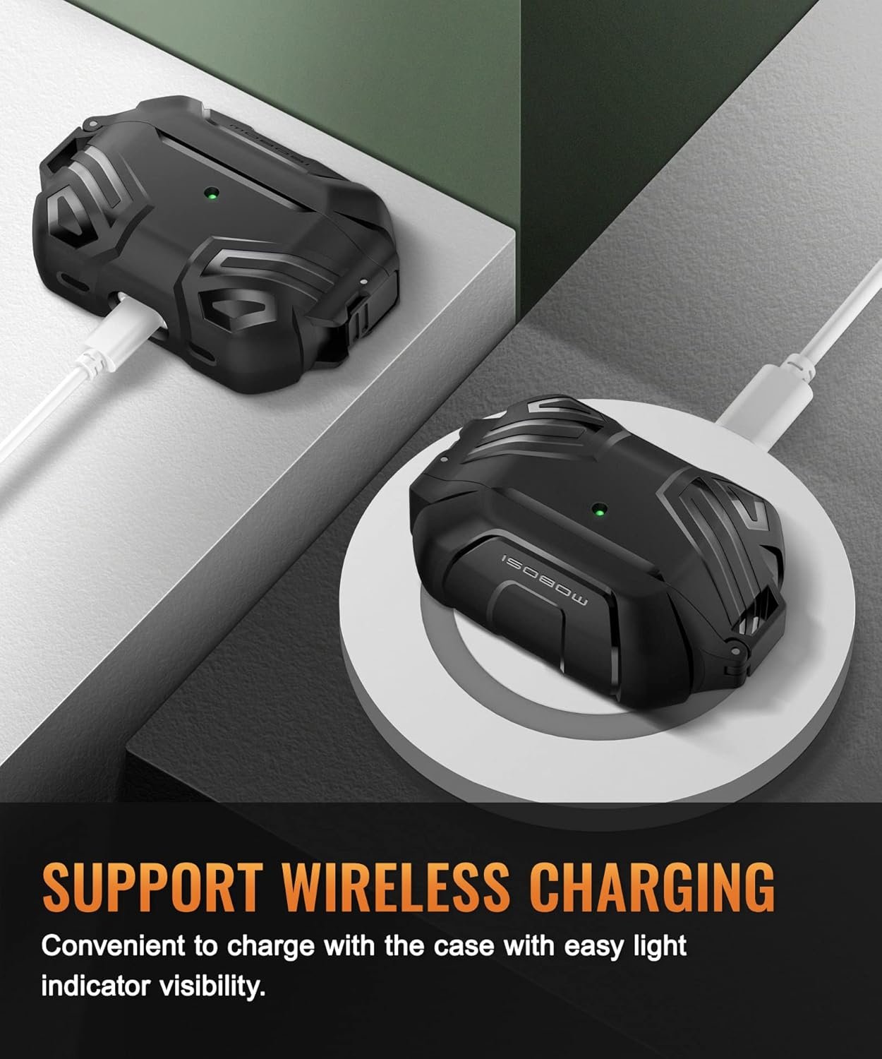 [Compatibility] Compatible with AirPods Pro 2nd Generation (USB-C/Lightning Cable) and AirPods Pro 1st Generation (2019). Qi-Certified wireless charging compatible without removing the protective case; also supports wired charging with quick access to lightning and USB-C charging port. LED Light visible. NOT compatible with Magsafe charging.