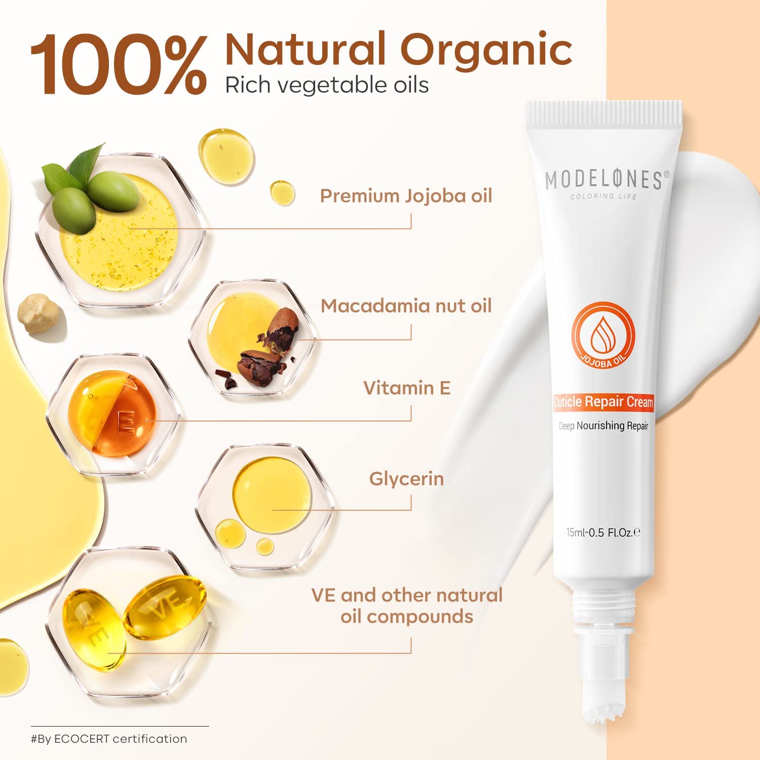 【Natural Hydrating, Deep Nourishment】Modelones cuticle repair cream made with a synergistic blend of natural vegetable oils and vitamins, by modern methods of creating a practical, fast-acting cuticle cream. The texture is smooth, non-greasy and light that easy to absorb with no residue, providing SPA-level care. Use every day to moisturize, soften and heal dry, damaged, peeling cuticles.