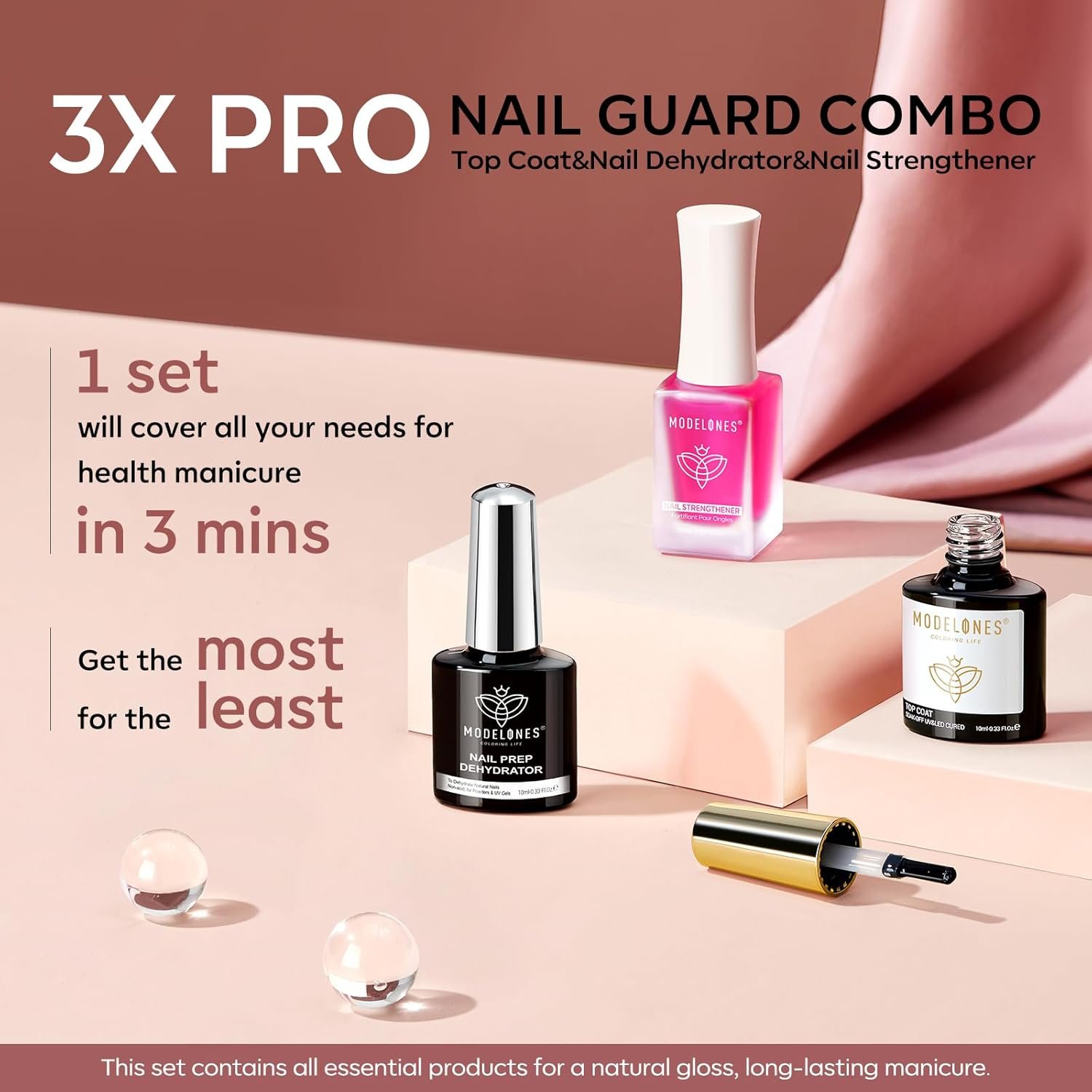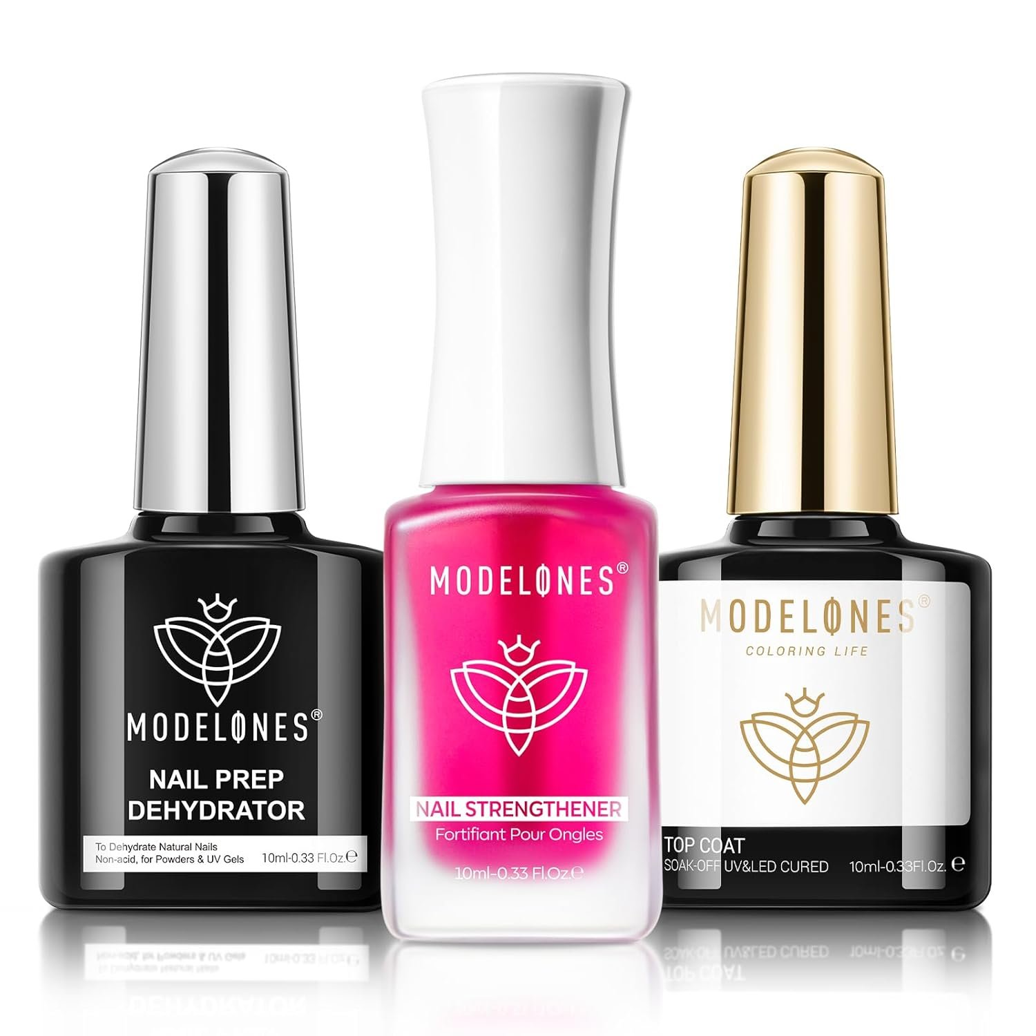 modelones Nail Strengthener with Gel Top Coat & Nail Dehydrator Nail Care Kit, Glossy Nail Prep Kit Nail Hardener for Repair Damaged Nails