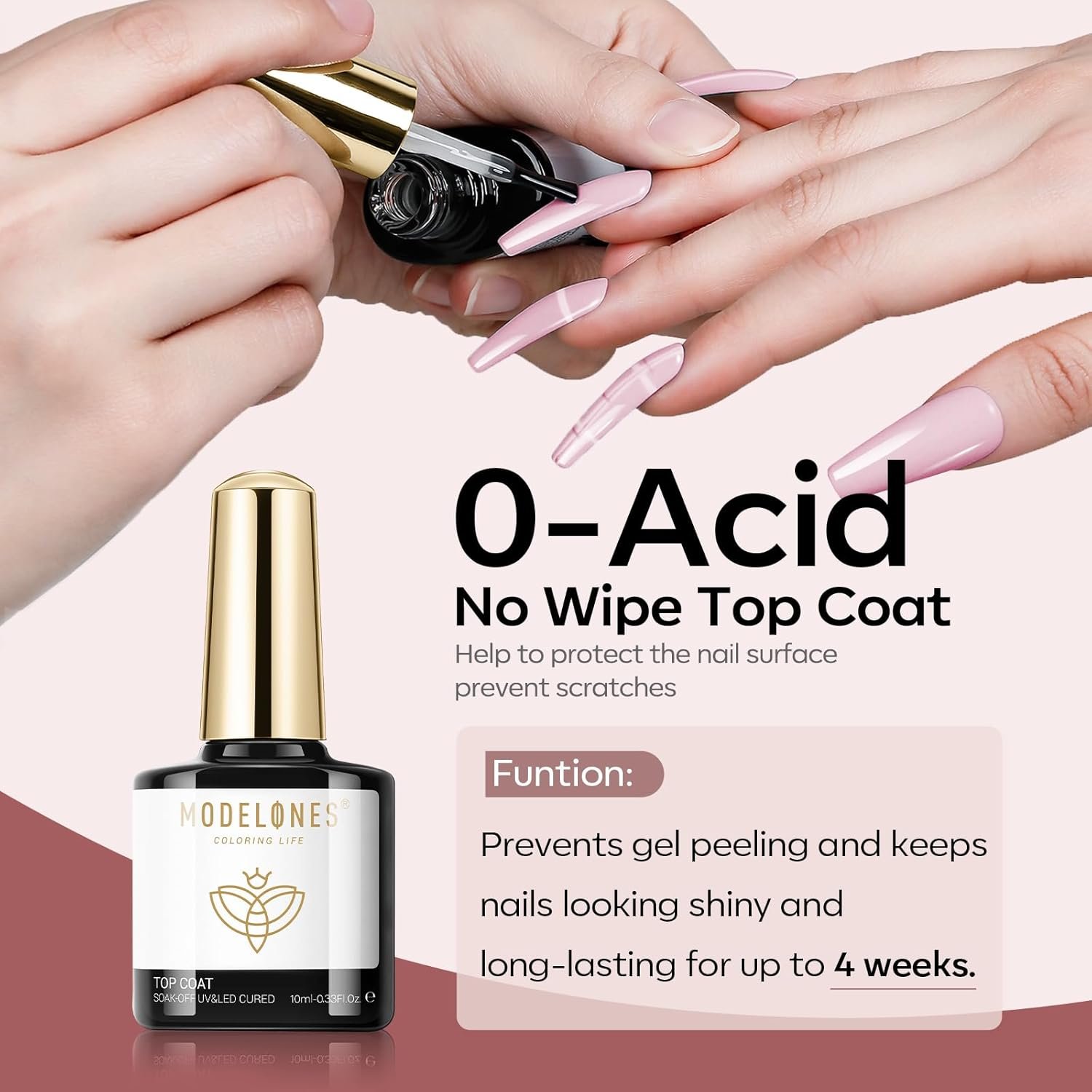 Long-lasting no wipe gel top coat: Modelones Clear Top Coat can make your gel last for over 28 days with a proper application due to its wear-resistant feature. The flexible top coat makes your nails shiny and avoids nicks, chips, and smudges. Bringing you a long mirror smooth effect. It is suitable for beginners to DIY nail art at home.