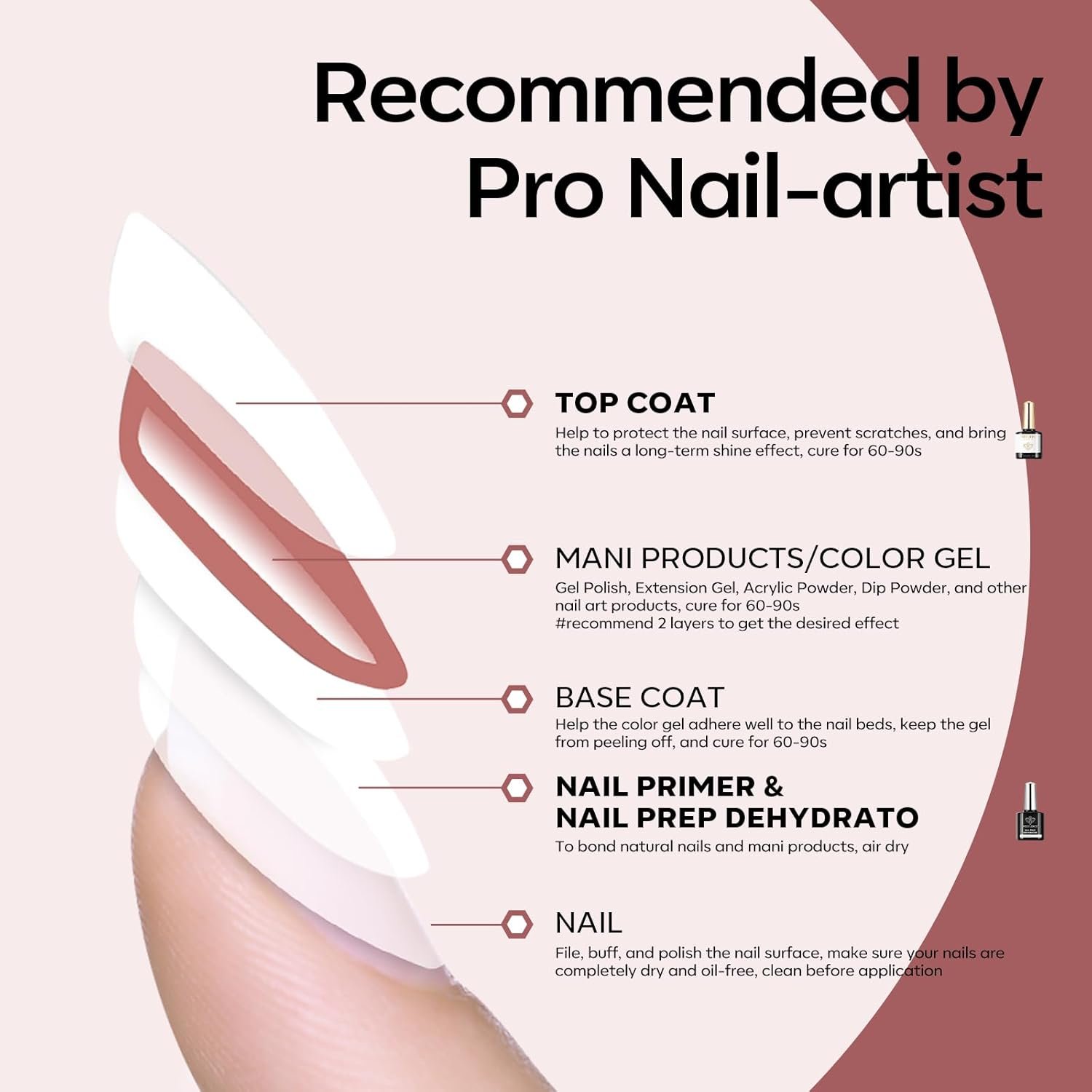 Natural nail tech supplies set: This set is made from natural ingredients. The ACID-FREE formula does not burn or irritate nails. The healthy and environmentally friendly formula is non-toxic to the body.