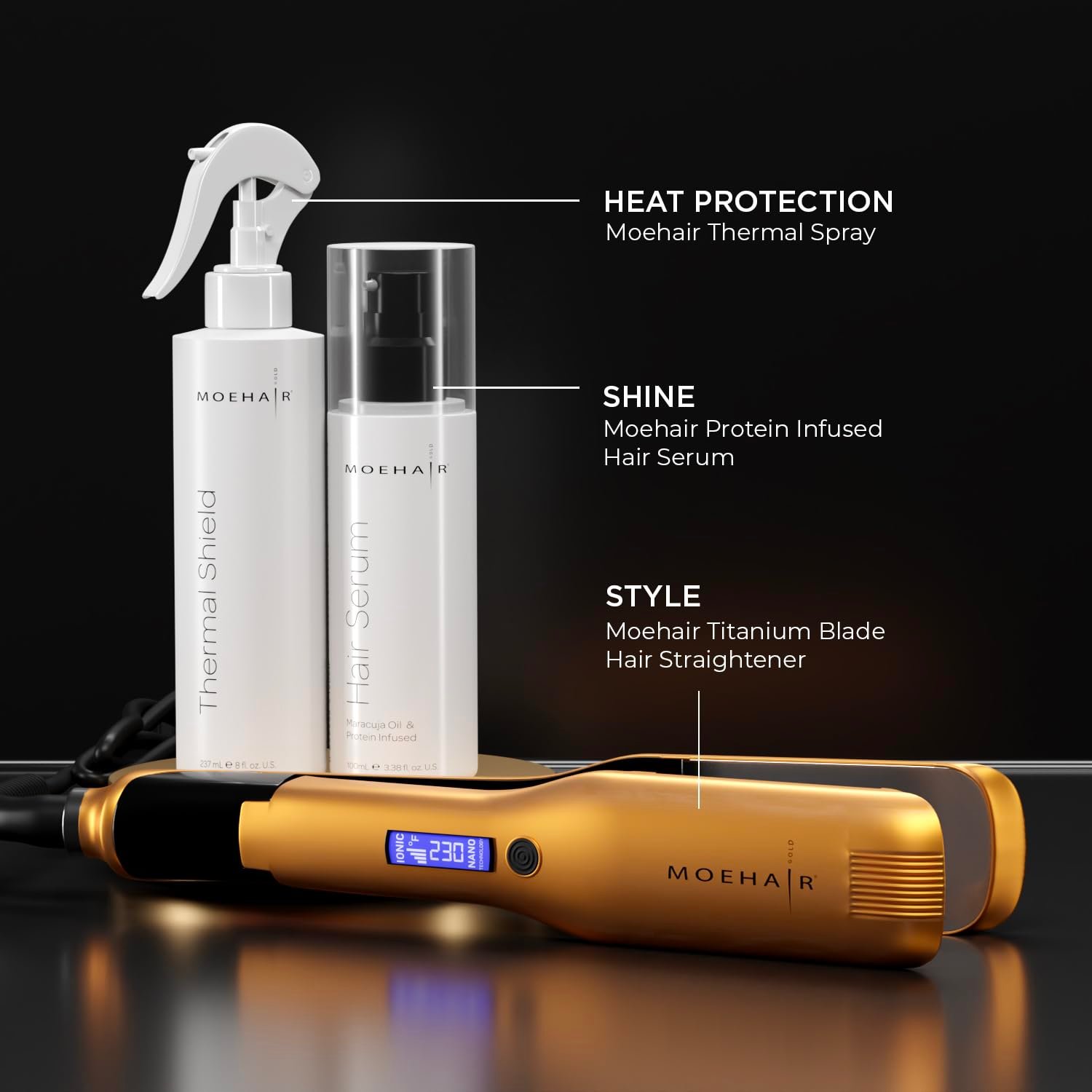 ✔️ HOW TO USE THERMAL SHIELD SPRAY — The all-in-one hair spray not only acts as a heat protectant spray but deeply nourishes, moisturizes, and hydrates hair. Spray the lightweight thermal protection hair spray uniformly along the length of your hair before using heat styling tools like blow dryers, curling irons, and flat irons. Apply evenly in sections, followed by combing with a wide-tooth comb to ensure it is evenly distributed