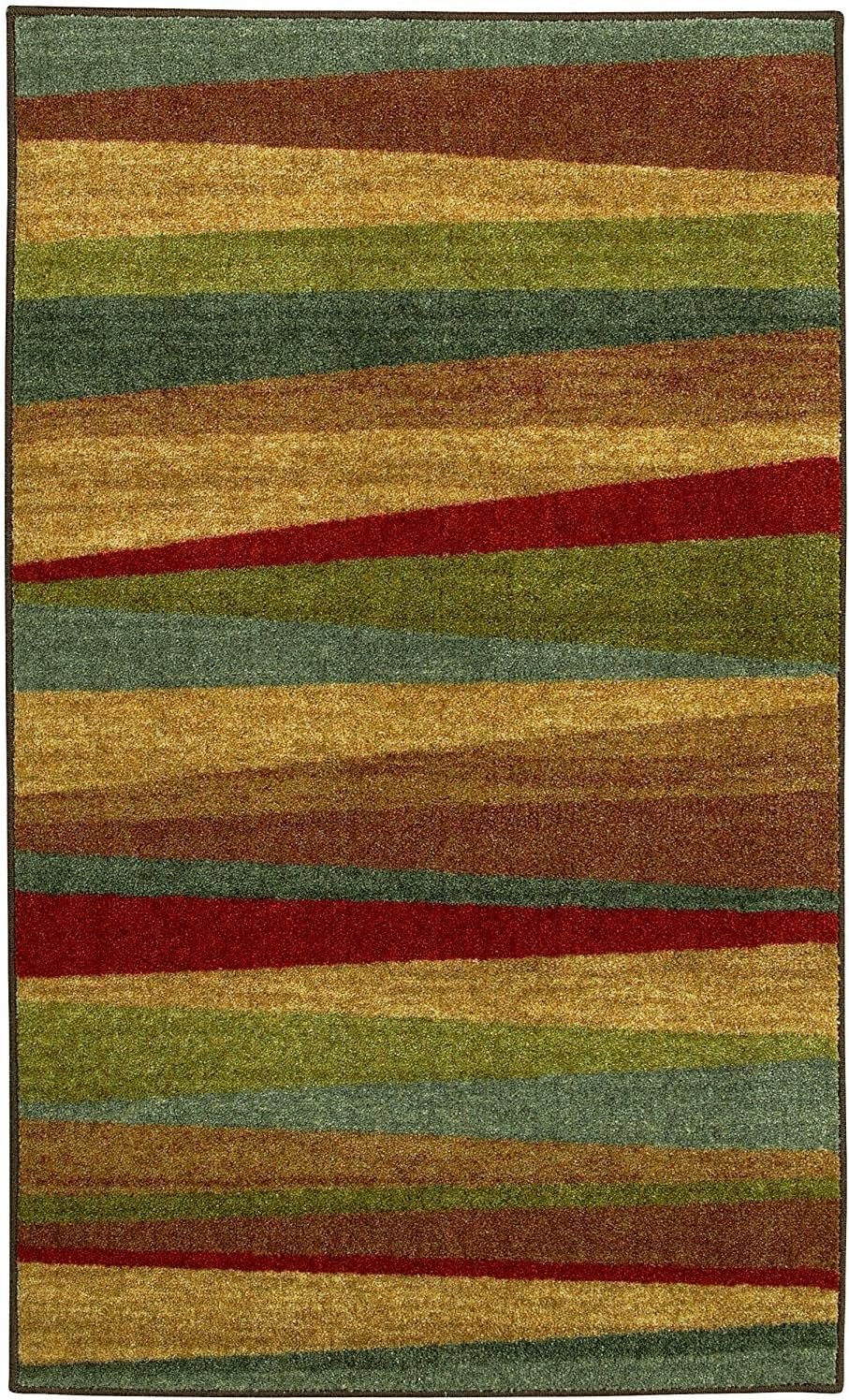 Rendered in a rich earth tone inspired palette, the Mohawk Home Mayan Sunset Area Rug features modern abstract stripes in bold hues of tan, cream, blue, red, brown, and taupe. Flawlessly finished, this collection features bold color clarity and richly defined details with the dependable durability needed for busy households. The dense pile is created with a premium wear dated nylon yarn that provides sumptuous softness and proven stain resistance power while the durable latex backing offers precise placement during daily wear and tear. This area rug is available in runners, scatters, 5×8, 8×10, and other popular area rug sizes, making it ideal for any indoor space, including the living room, dining room, bedroom, office, hallways, entryways, and more.