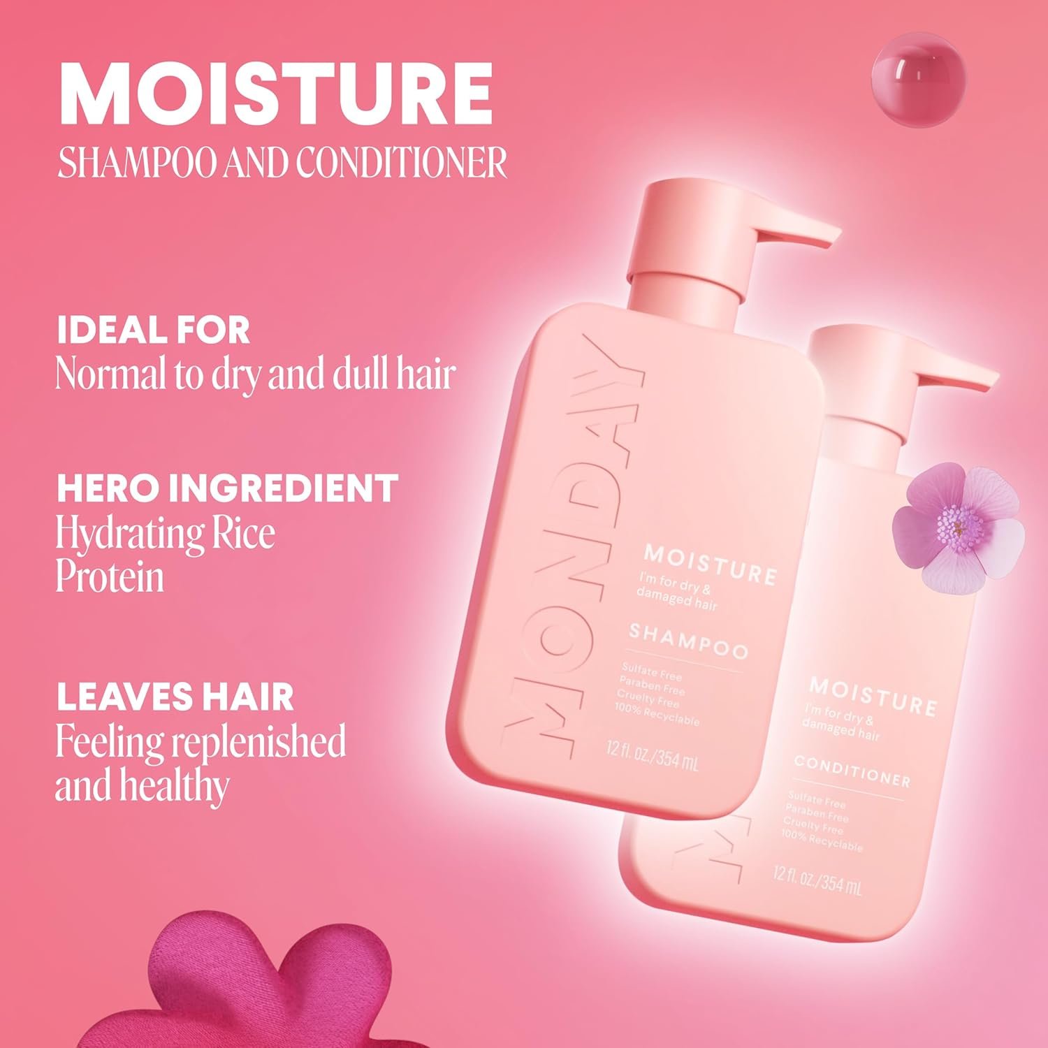 MOISTURE + GUMMIES BUNDLE: This bundle contains MONDAY Haircare’s best-selling MOISTURE Shampoo 12 fl oz (354 ml) and MOISTURE Conditioner 12 fl oz (354 ml) plus Hair Gummies, a daily hair health supplement. Ideal for normal to dry and dull hair.