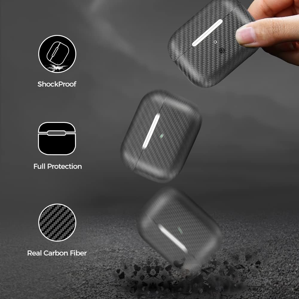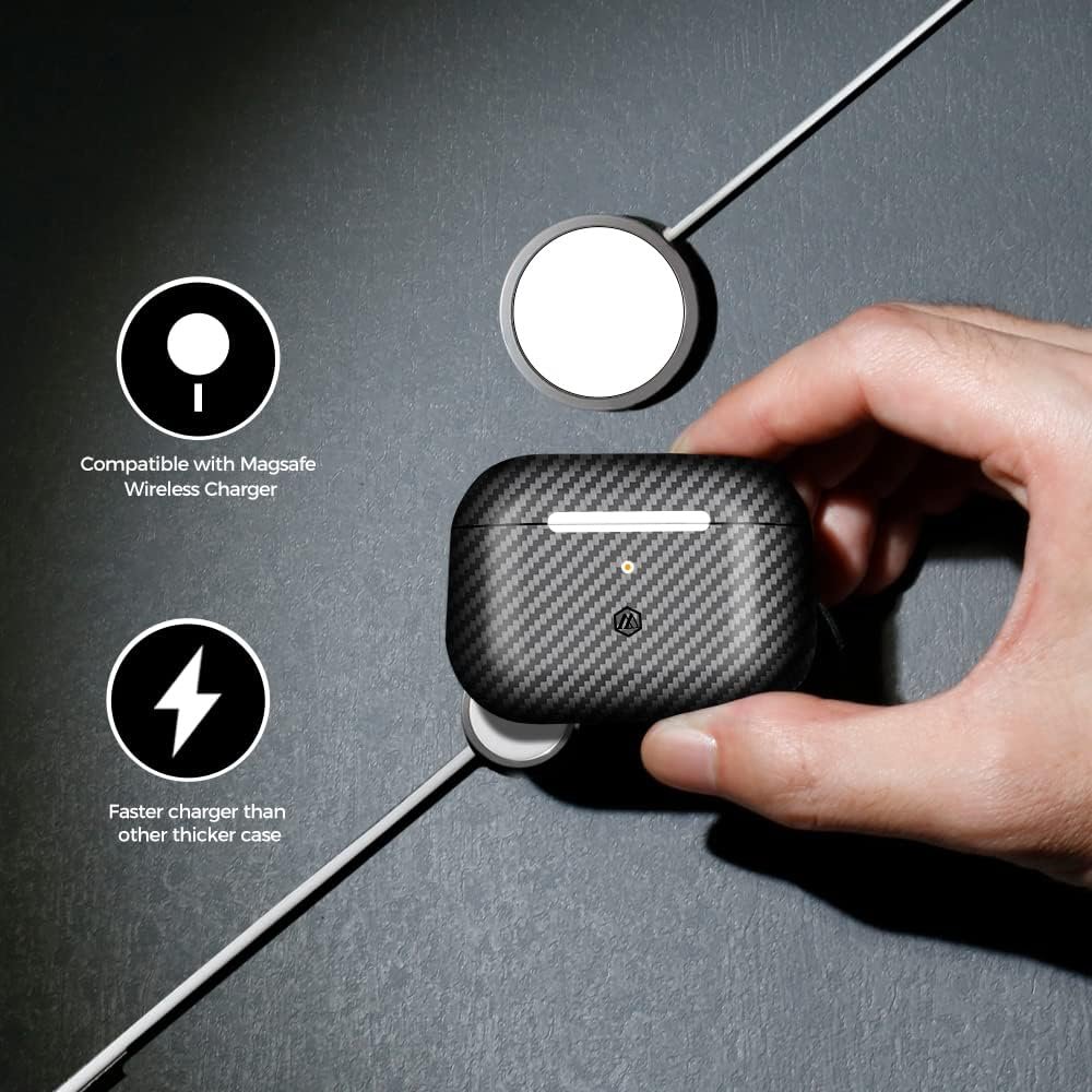 【Slim & Lightweight】MONOCARBON carbon fiber airpods pro 2 case ultra slim and light weight only 8g, thickness is 0.6mm,durable, and never fade away