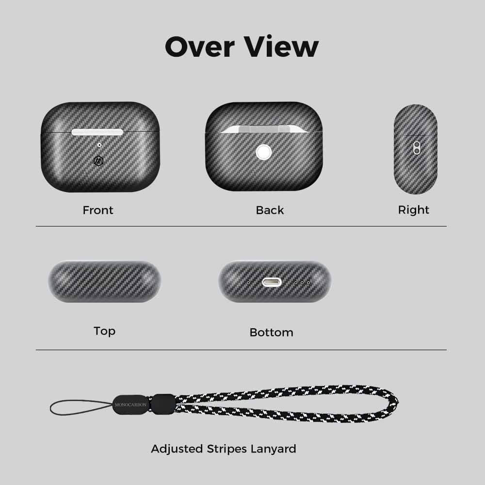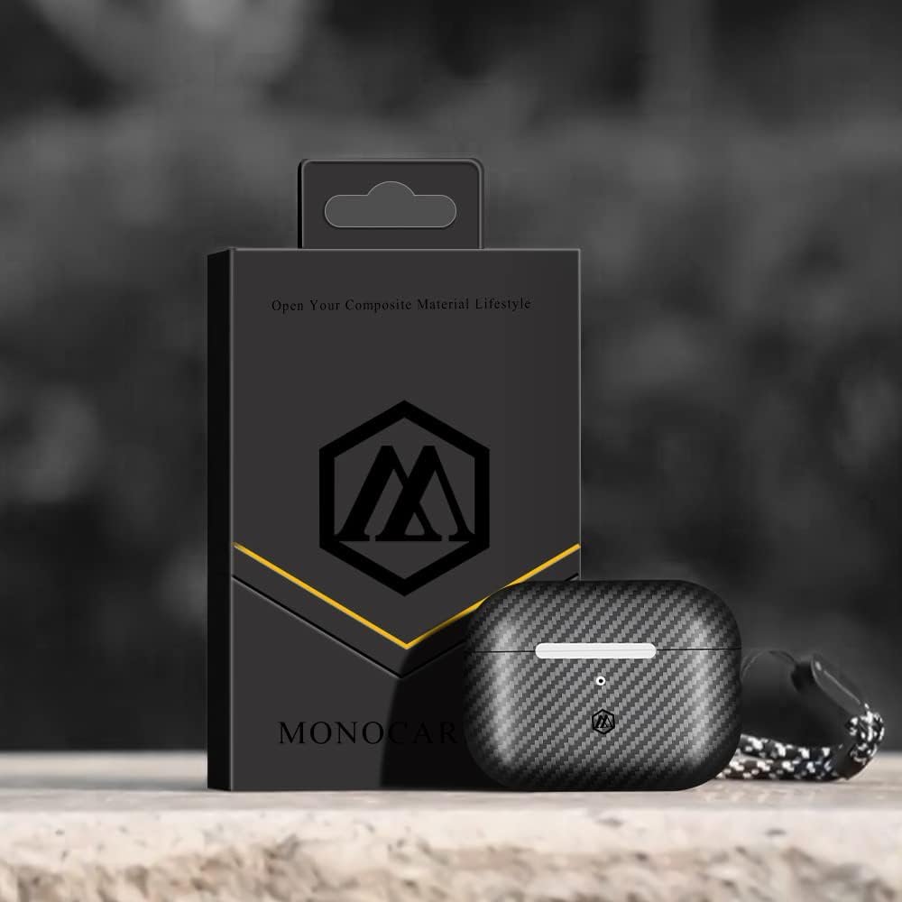 MONOCARBON Real Carbon Fiber Case for AirPods Pro 2nd Generation 2022 with Stripes Lanyard | Slim & Durable Cover for AirPods Pro 2 Accessories | Support Wireless Charging | Shock-Absorbing Protective