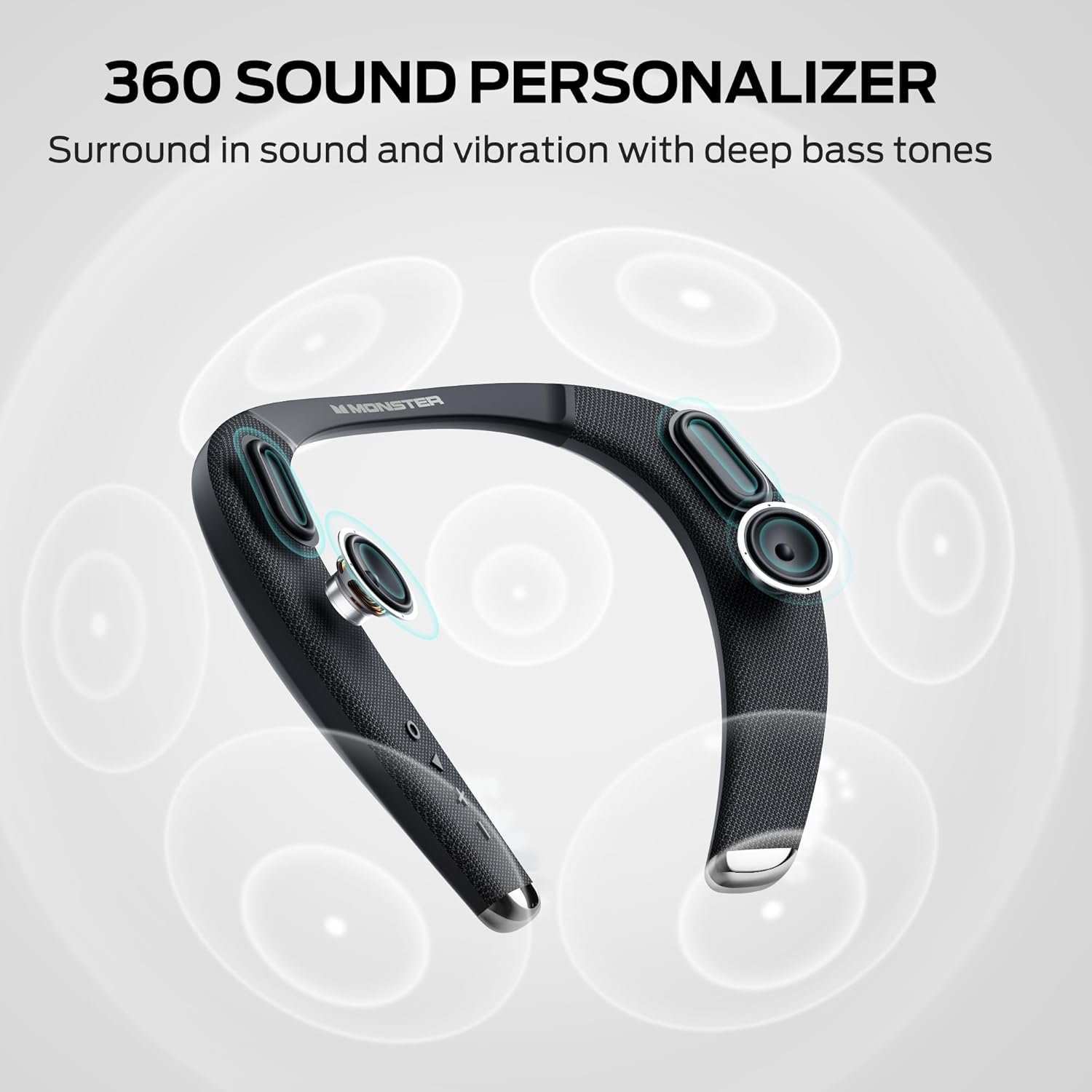 【Fast Connection & Low Latency 】Monster wireless neck speaker adopts Bluetooth 5.0 Bluetooth technology and enjoys 2 times the transmission speed, no signal loss or music interruption. Compatible with any Bluetooth-enabled devices, including smartphones, computers, and TVs. Featuring aptX Low Latency technology, allows you to reduce Bluetooth delay- delivering high-quality sound in perfect synchronization.