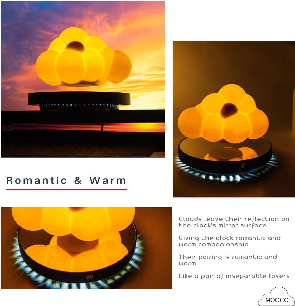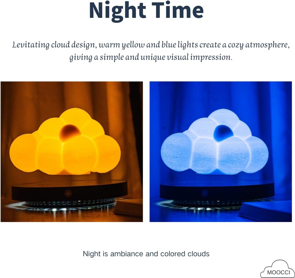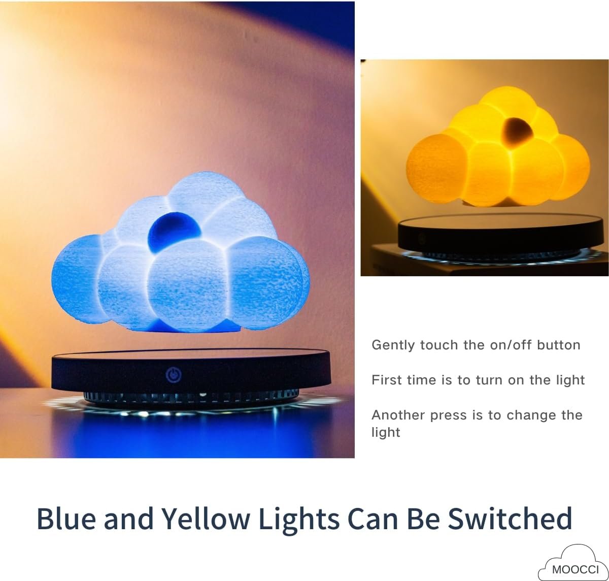 【Magnetic Levitation Technology】- 3D printed clouds are combined with magnetic levitation technology to create a mesmerizing floating effect, with touch-changing light as well as 360° rotation in the air.
