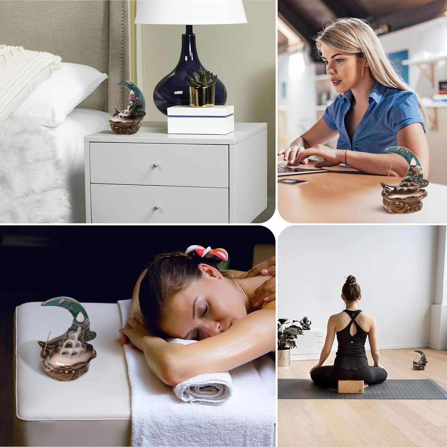 🌙Wide Application: Our backflow incense holder as an aromatherapy decoration helps to eliminate fatigue, relieve stress and meditate. Great for a variety of occasions like home, bedroom, living room, bedroom, yoga room, meditation room, zen room, study, office.