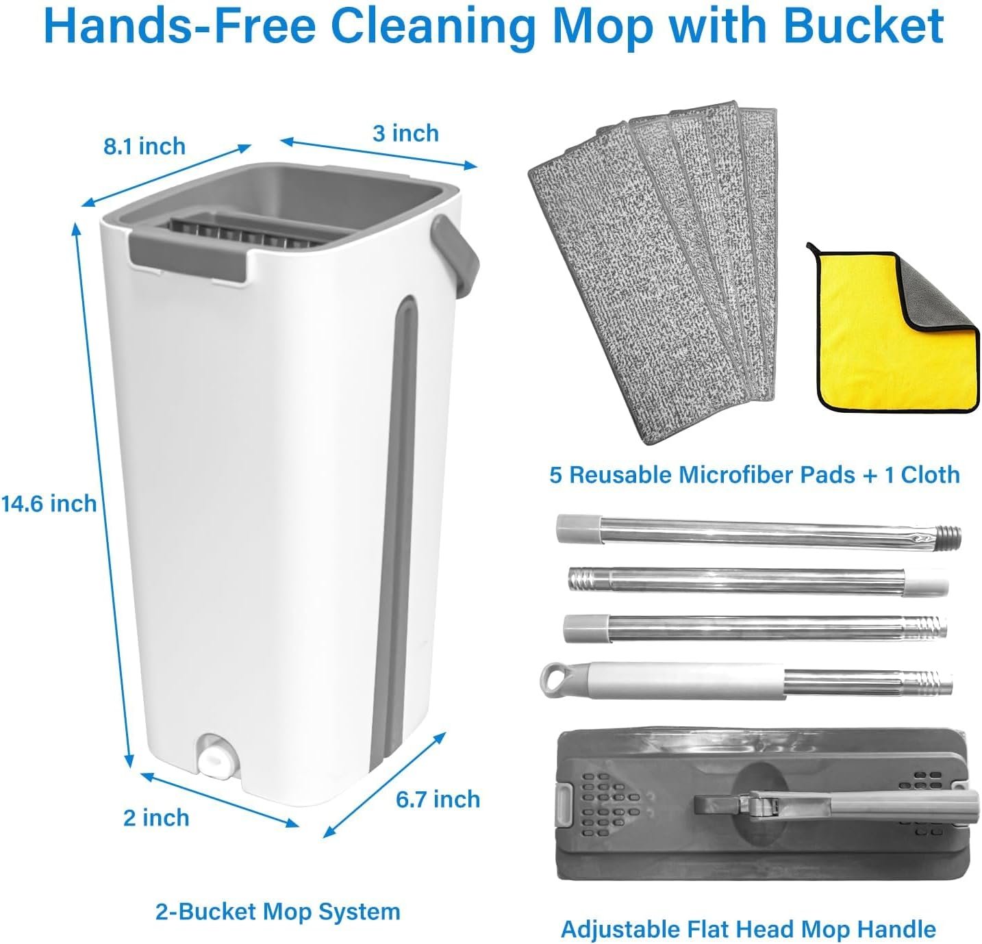 Mop and Bucket with Wringer Set, Hands Free Flat Floor Mop and Bucket, with 5 Washable Microfiber Pads And 1 Cleaning towel Included, Wet and Dry Use, Floor Cleaning System