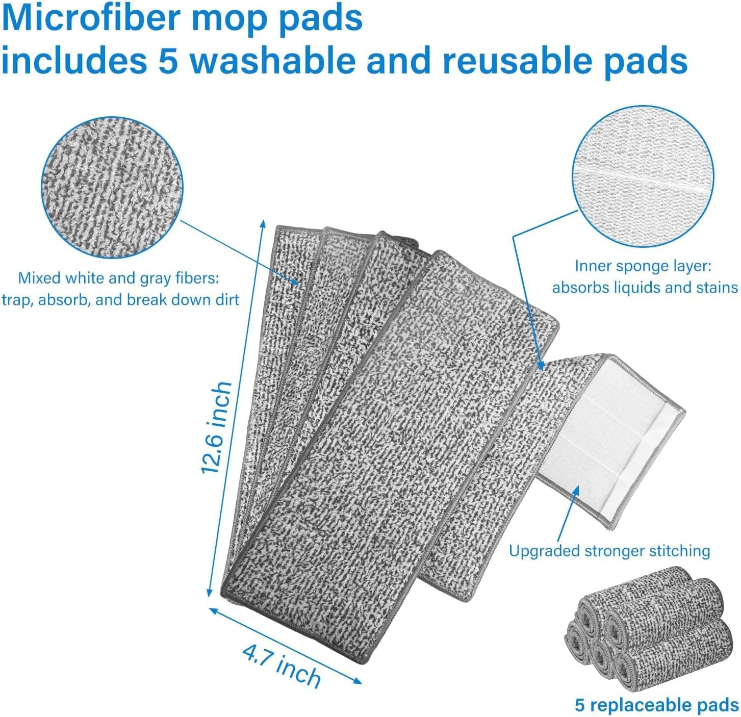 【Washable Microfiber Pad filling】:Come with 5 microfiber mop pads fill this set. Strong water absorption, easy dry and wet cleaning. Washable mop pads maintain quality after washing in the washing machine and maintain long-term availability. It is recommended to replace the packing material every 1-2 months up to use frequency.