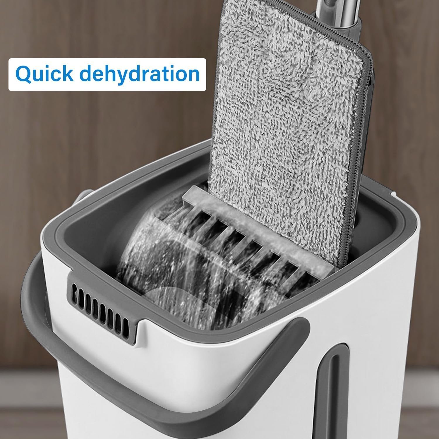 【Integrated Mop And Bucket System】: There are 2 separate washing and drying chambers in the bucket. The scraper squeezes dirt, hair or dust during washing, squeezes out excess water during drying, and leaves no water after mopping. Note: Please wet the mop to avoid hard insertion problems!