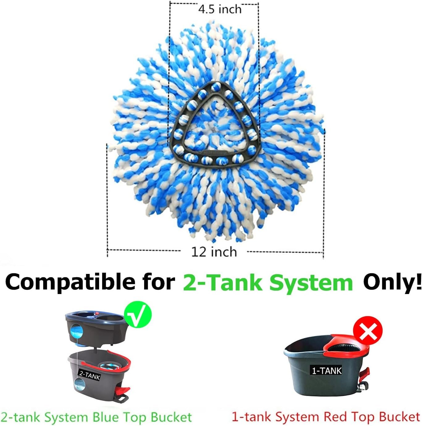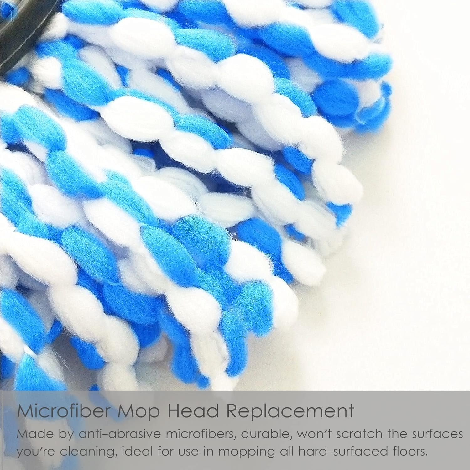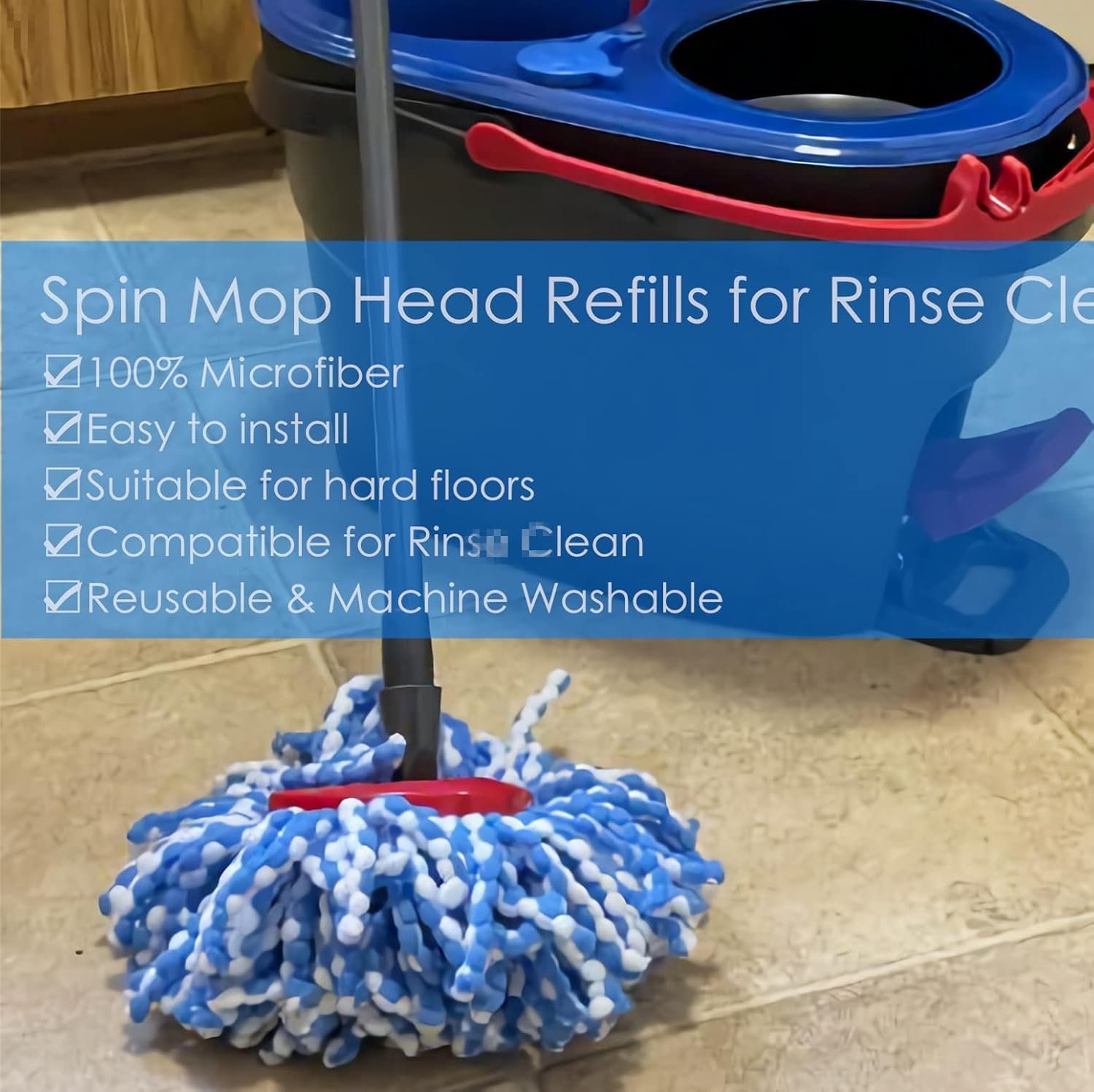 Mop Head Replacement Compatible for Rinse Clean 2-tank System Spin Mop Features:Made of 100% microfiber for streak-free cleaning. This mop refill is ideal for use in mopping all hard-surfaced floor.Machine washable microfiber mop refill for 2-tank spin mop bucket. The easy wring spin mop refill has soft, absorbent strings that will not scratch floor surfaces.Keeps you hand off the dirty waters.Save time & extra labor to clean the floor.Easy to install, snap on mop refills.