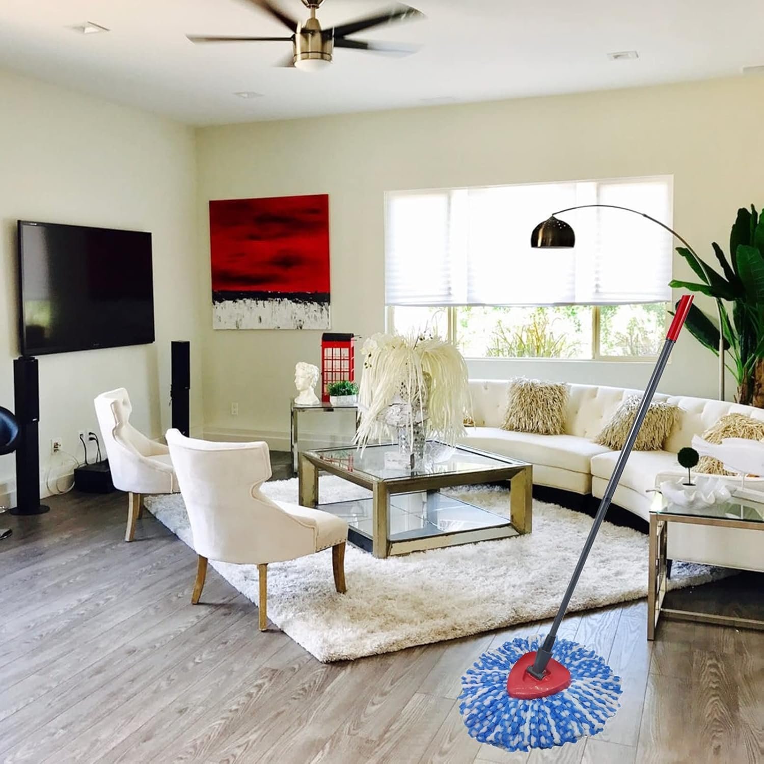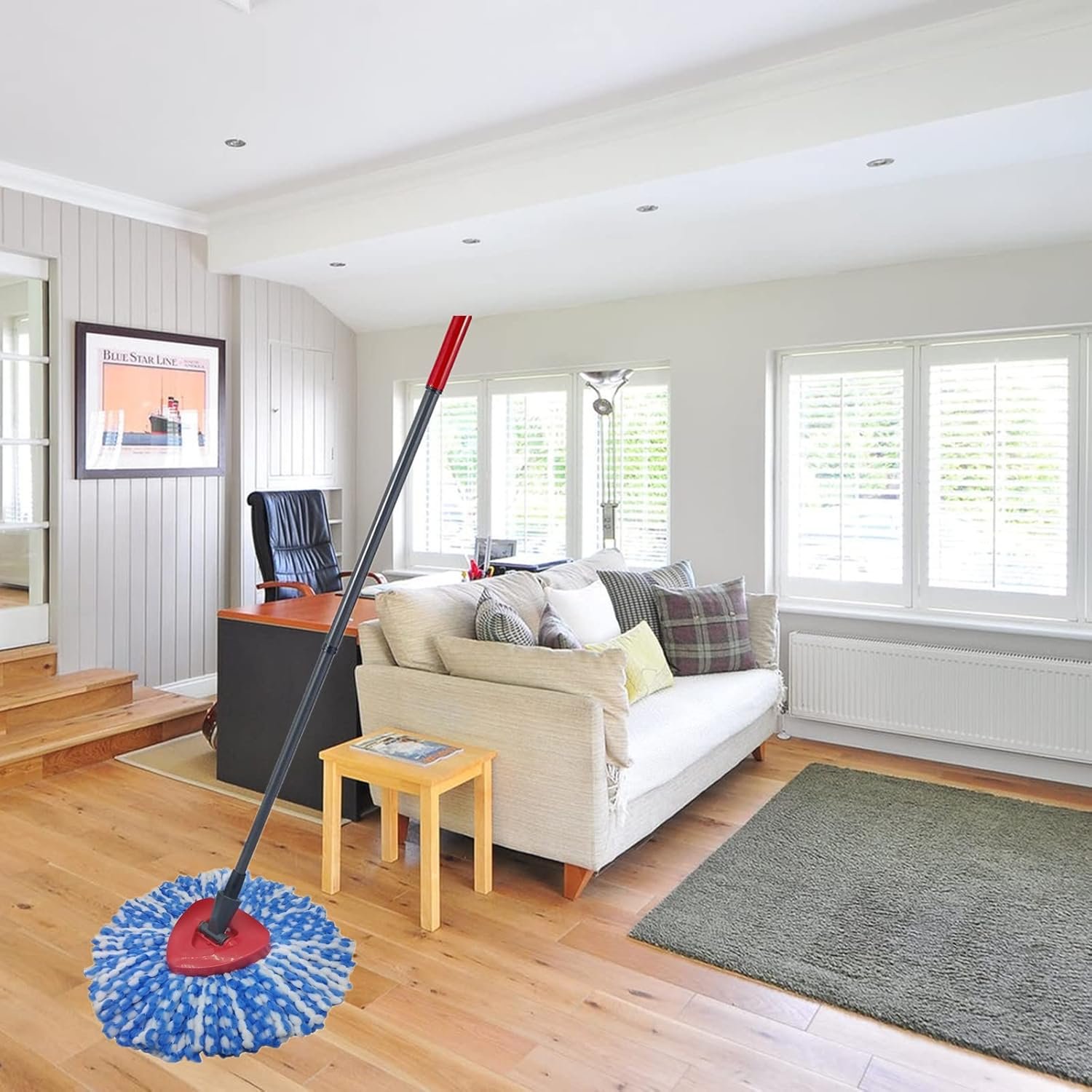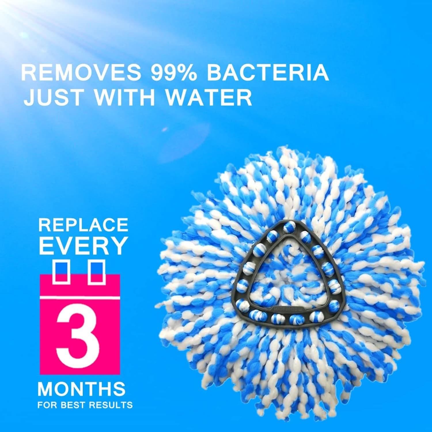 Mop Head Replacement Compatible for Rinse Clean 2-tank System Spin Mop Features:Made of 100% microfiber for streak-free cleaning. This mop refill is ideal for use in mopping all hard-surfaced floor.Machine washable microfiber mop refill for 2-tank spin mop bucket. The easy wring spin mop refill has soft, absorbent strings that will not scratch floor surfaces.Keeps you hand off the dirty waters.Save time & extra labor to clean the floor.Easy to install, snap on mop refills.