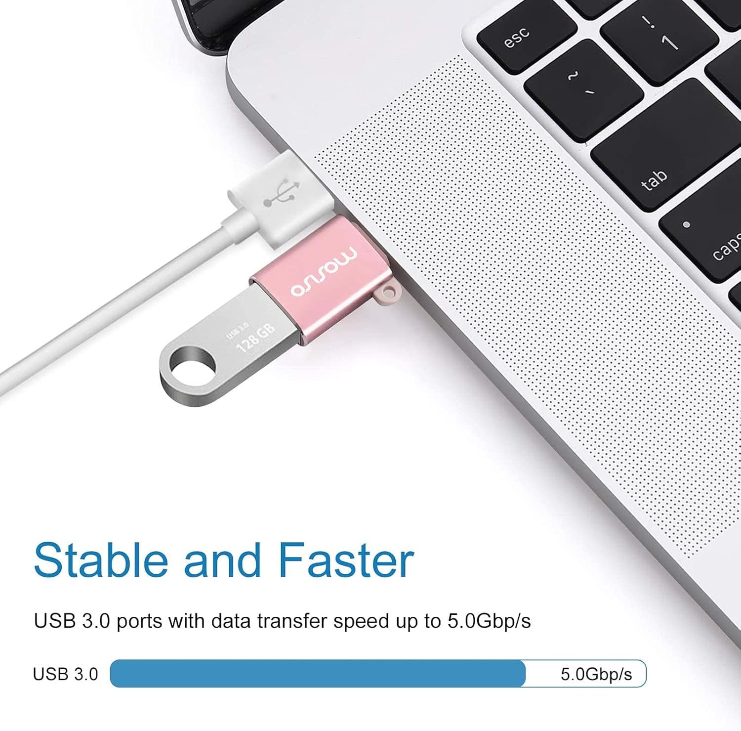 This USB-C to USB-A connector also support synchronous charging to your phone and tablet with data transfer speed up to 5.0Gbps.