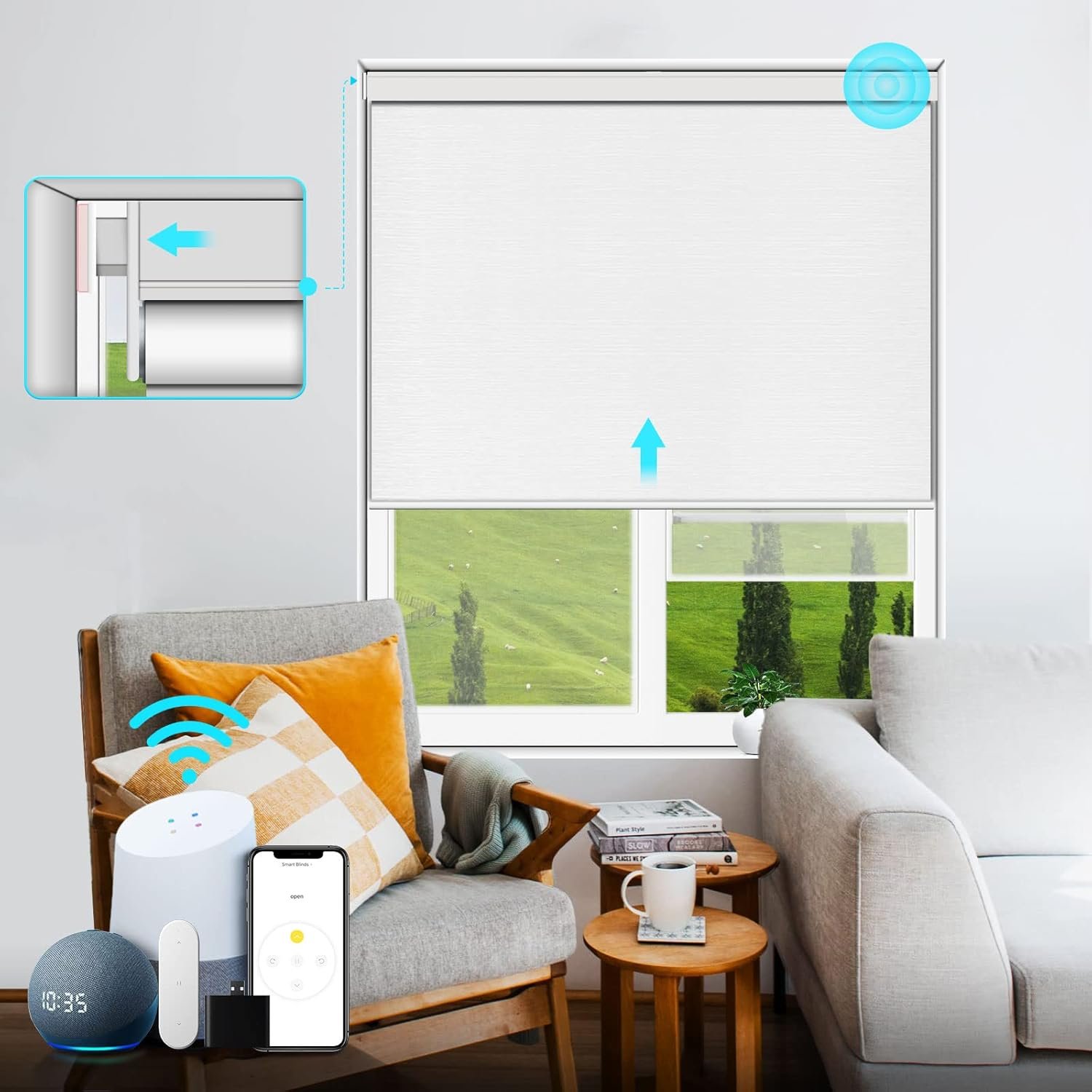 Motorized Blinds No Drill Automatic Blinds for Windows Cordless Roller Shades Electric Blinds with Remote Control Smart Blinds (Customize Size)