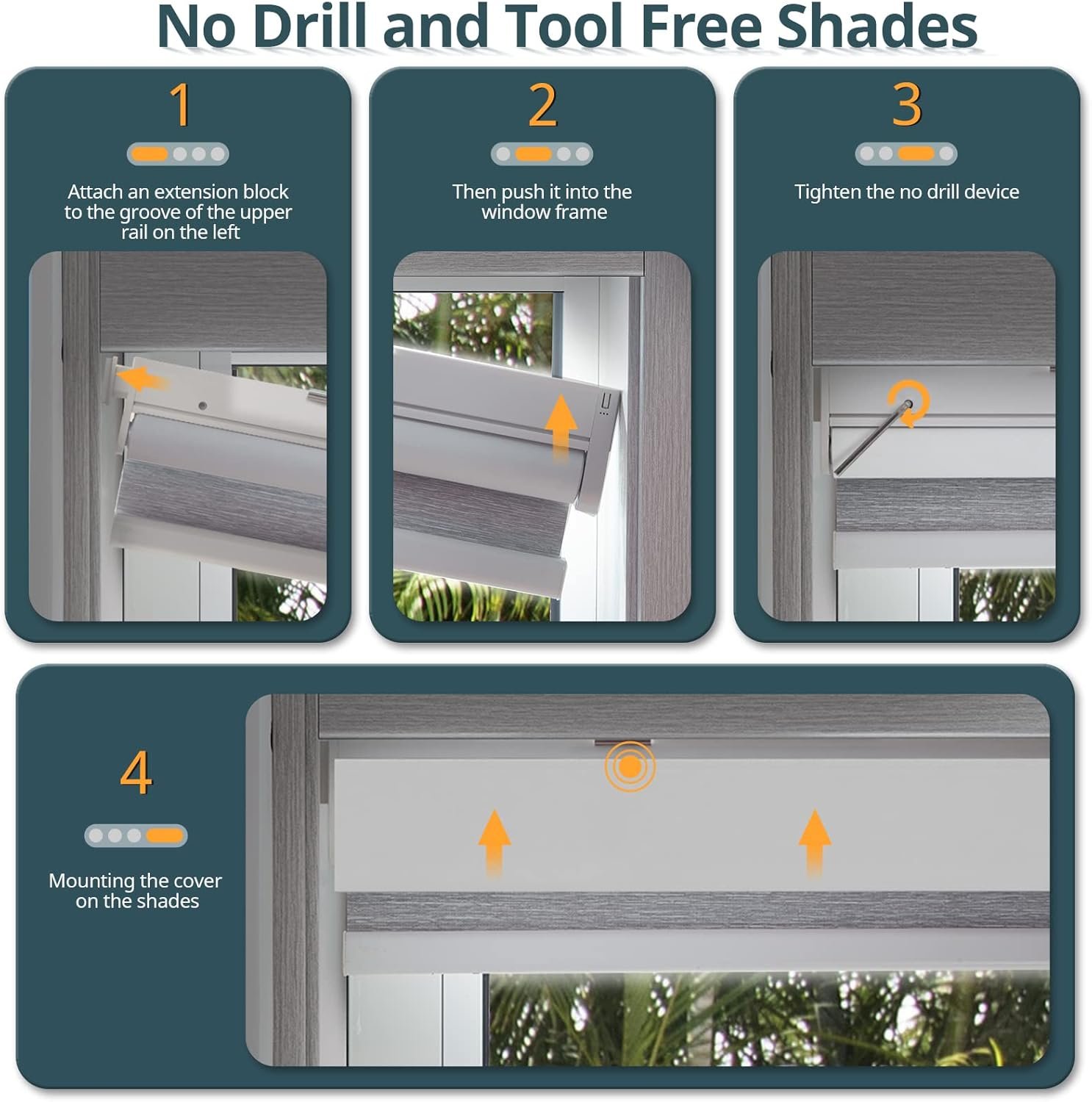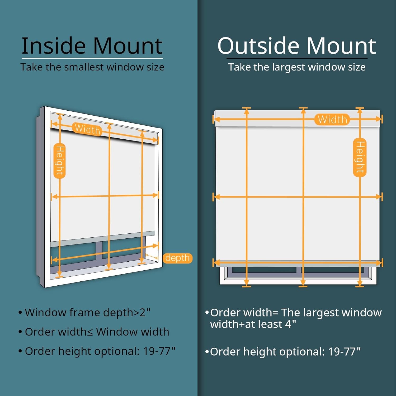 EASY INSTALL BLINDS: The remote blinds have a simple and practical no-drill mechanism(suitable for inside mount). Attach the adhesive extension block to the groove of the upper rail (it is forbidden to put more than one block), and then push it into the window frame. There is a battery compartment at the top to supply power for the shades. If the batteries are low, just take them out and replace. A stylish valance is included to block the light from the gap between fabric and the top rail.