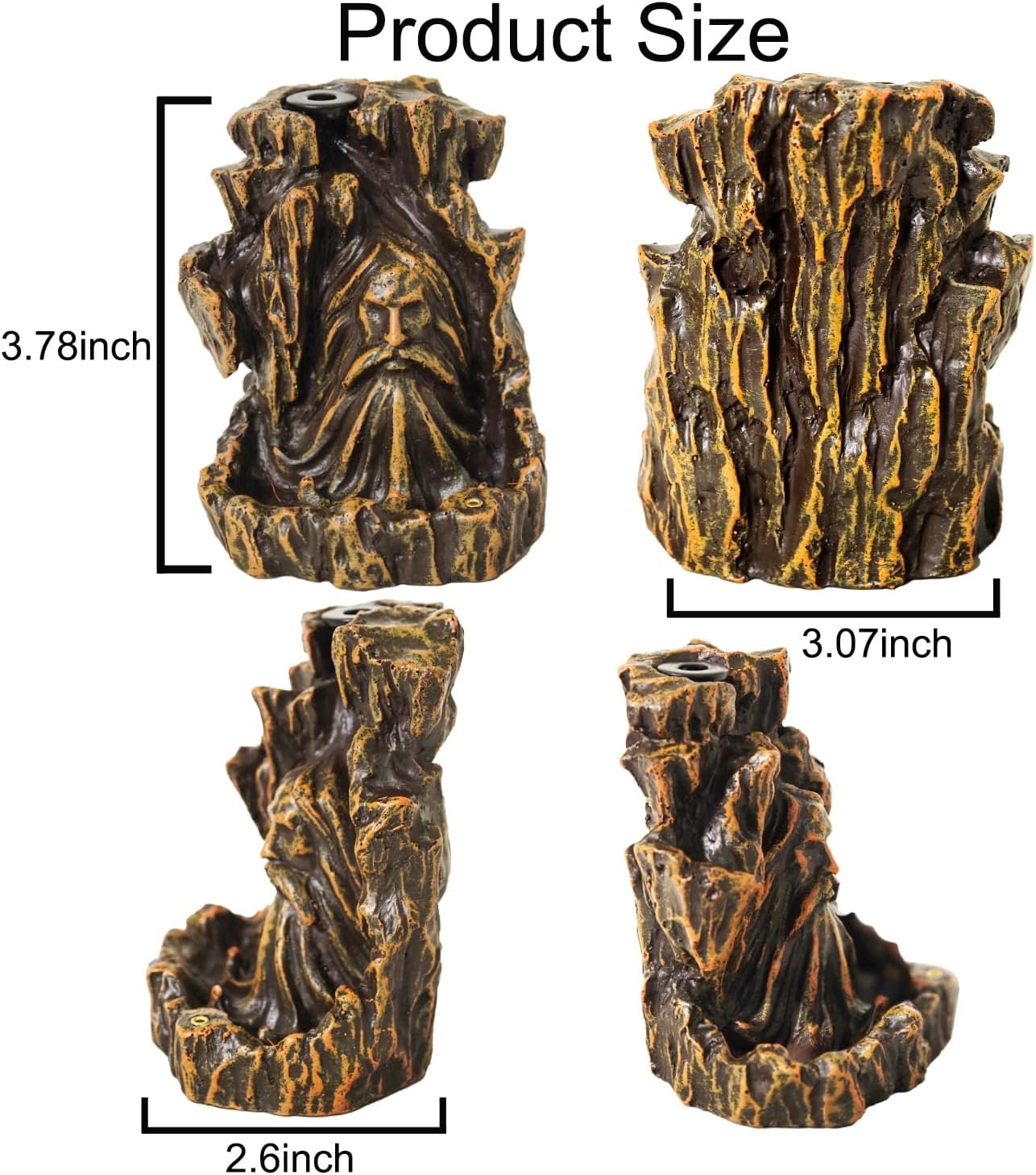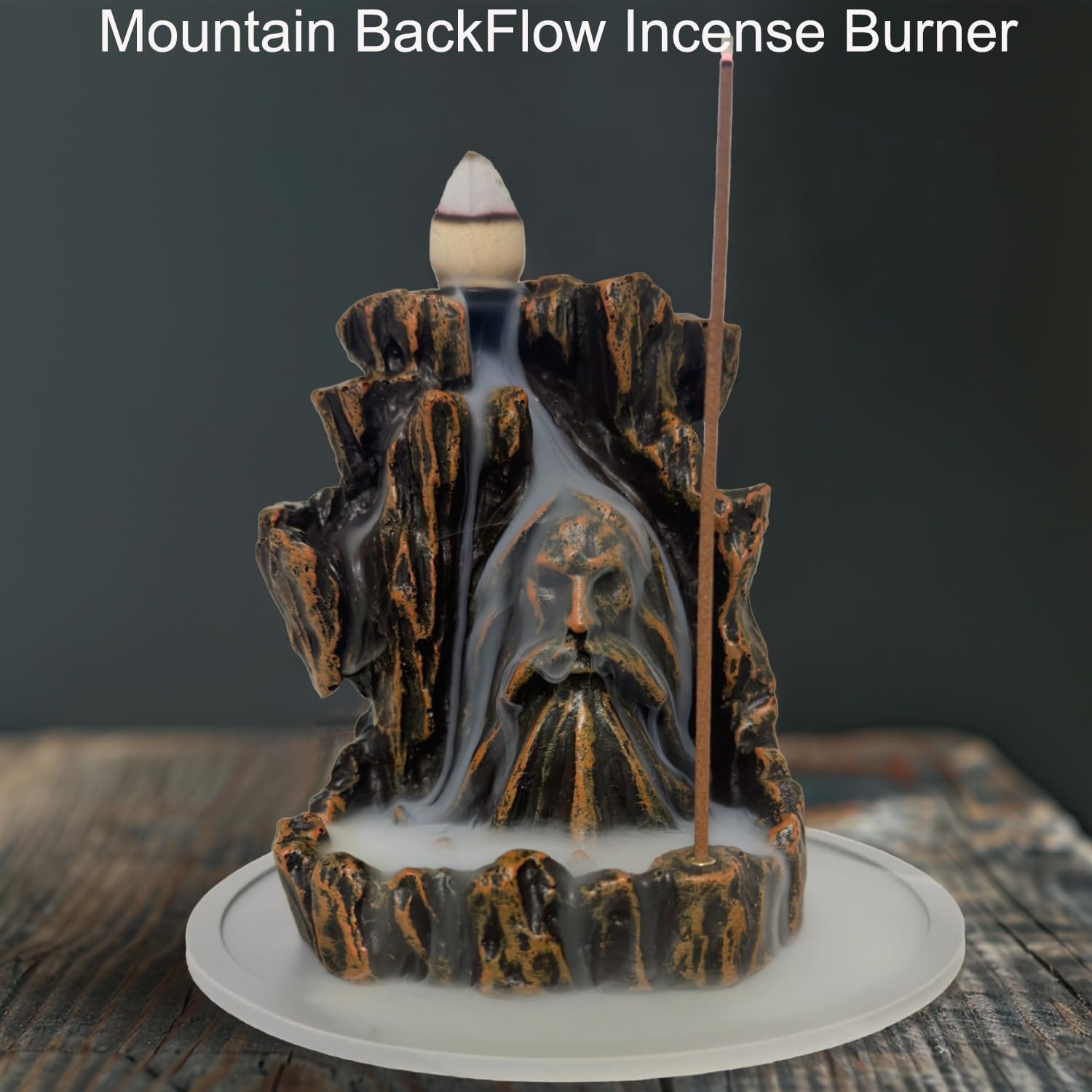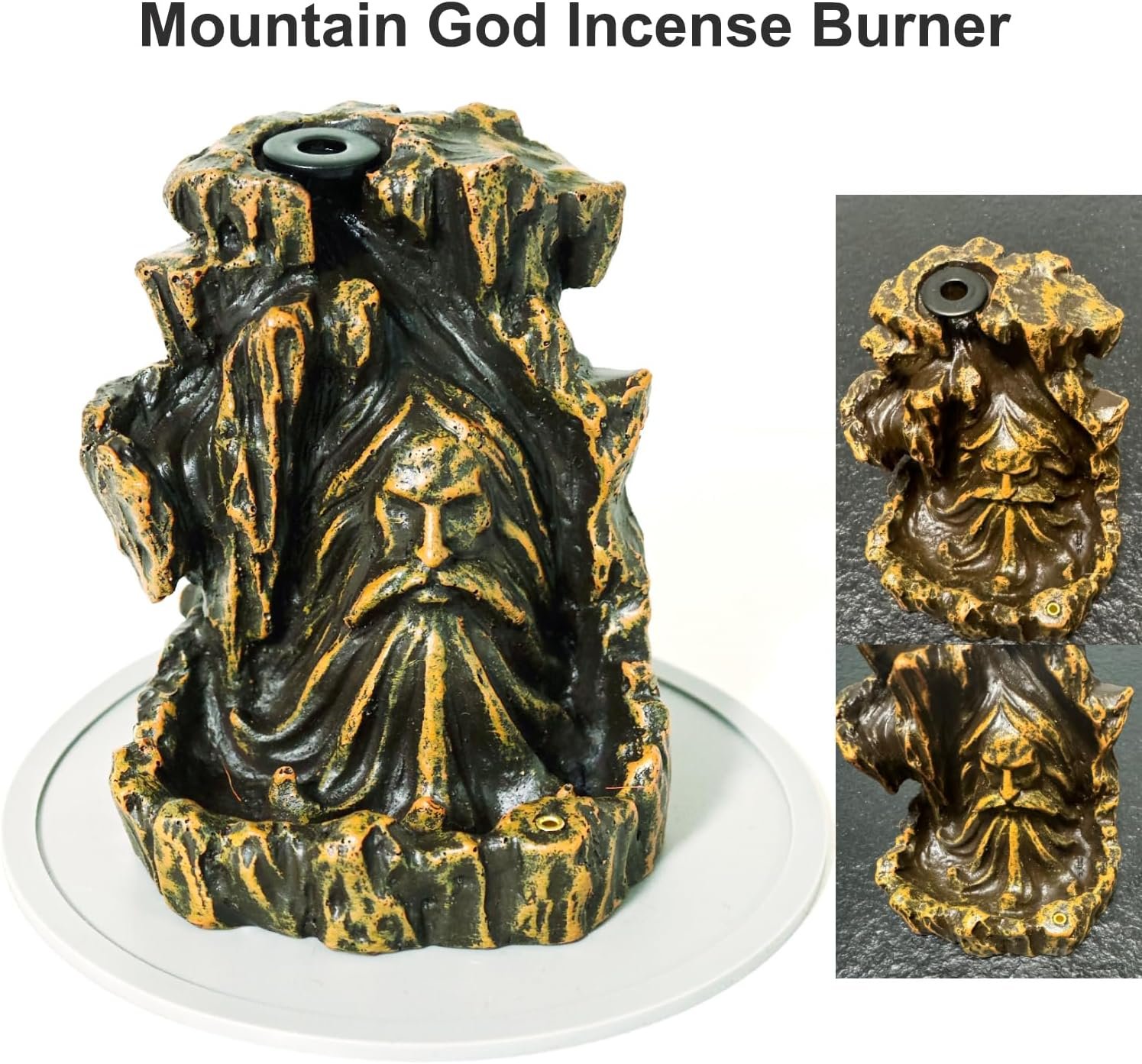 Unique Design Incense Burner: Resin incense burner is made of environmentally friendly resin, hand-carved in the shape of a mountain with a god’s head on it, A hole on the bottom of the mountain to hold an incense stick for regular burning.