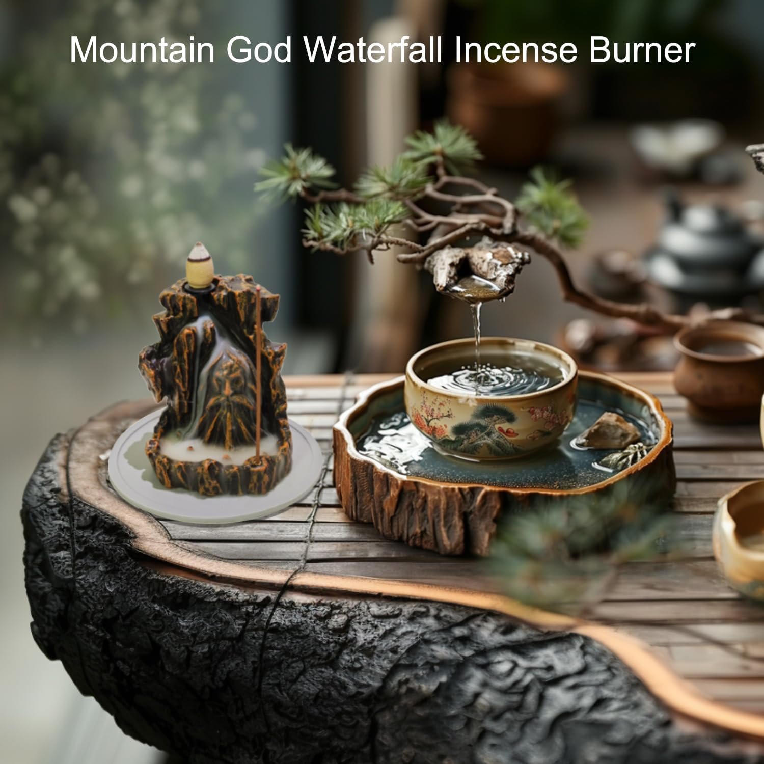 Incense Burner Backflow Cascade: Experience the enchantment as fragrant smoke gracefully descends down the mountain, creating a mesmerizing backflow effect.