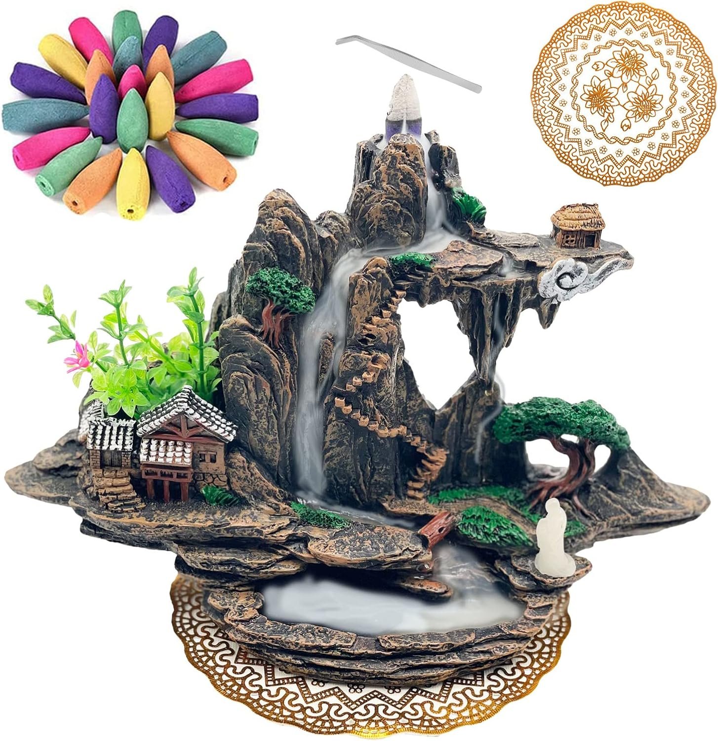 Our mountain waterfall incense burners are carefully carved by Chinese artists, and the colors of the burners are unique, all hand-painted, with shades of color that mimic nature.We are equipped with all accessories and easy to use, you can give it as a mystery gift to your partner, kids, parents, colleagues. It will definitely not let you down.