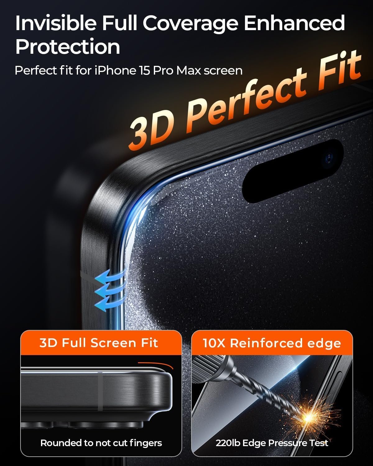 [1:1 Coverage, Truly Invisible Screen] This screen protector mimics theiPhone 15 Pro Max 1:1 precision moulding, using enhanced 3D curved edges, dustproof and does not hurt your hands, full coverage design, you can not even see it, this is the real invisible screen. In addition, the protective film is compatible with most mobile phone cases on the market, no need to worry about the edges will buckle.