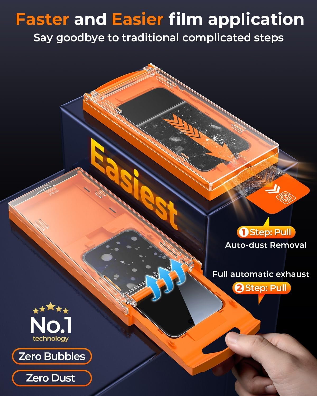 [[Auto Dust Removal Function] Specialising in designing for screen protector iPhone 15 Pro Max 6.7″ with the new upgraded auto dust removal technology, 5 times strong adsorption power, truly 0 dust! Simply place the device in the installation cabin, 1s auto alignment, cover the lid, pull out the dust absorbing strip to complete the automatic dust removal, no need for tedious cleaning steps, no longer need to worry about airborne dust caused by the failure of the film.