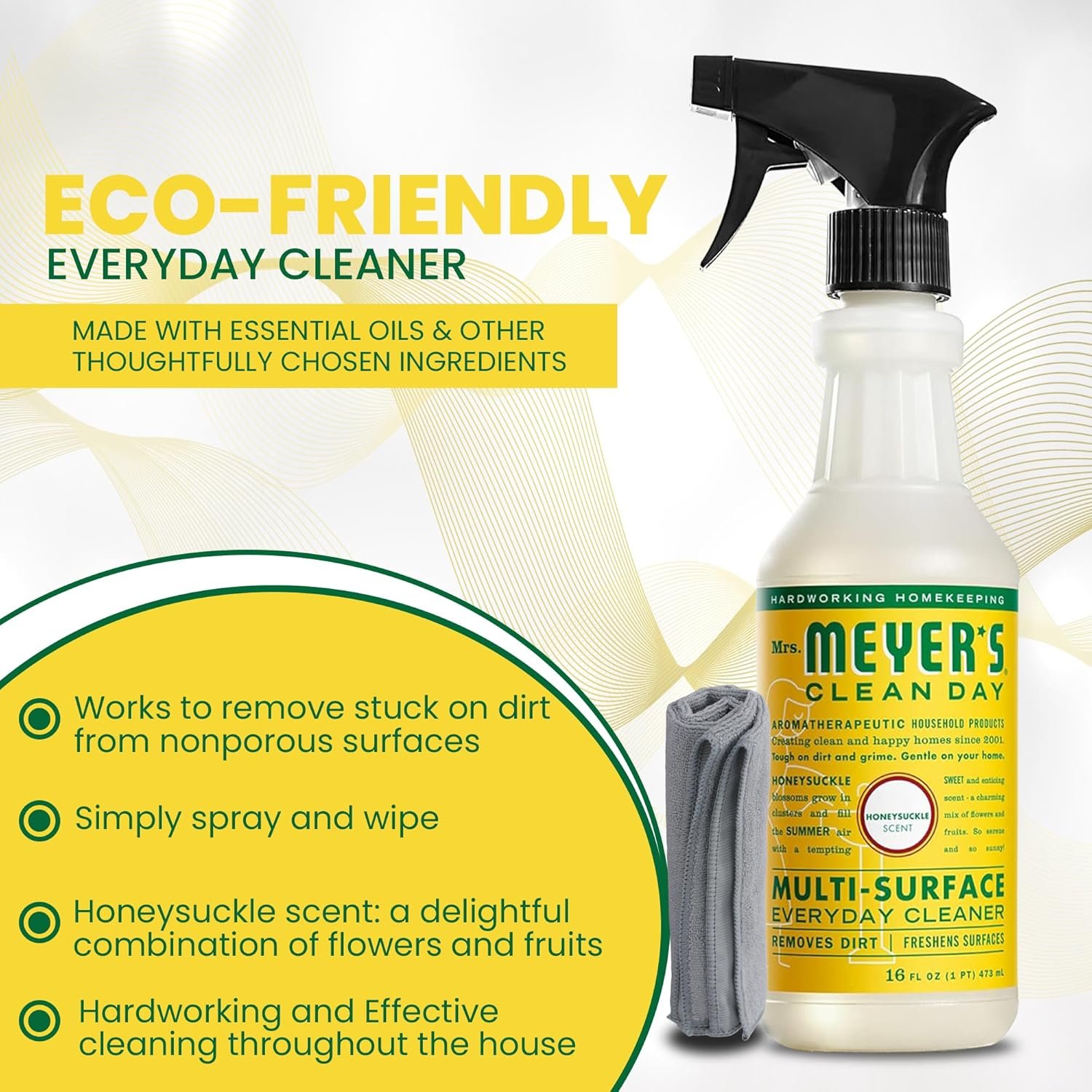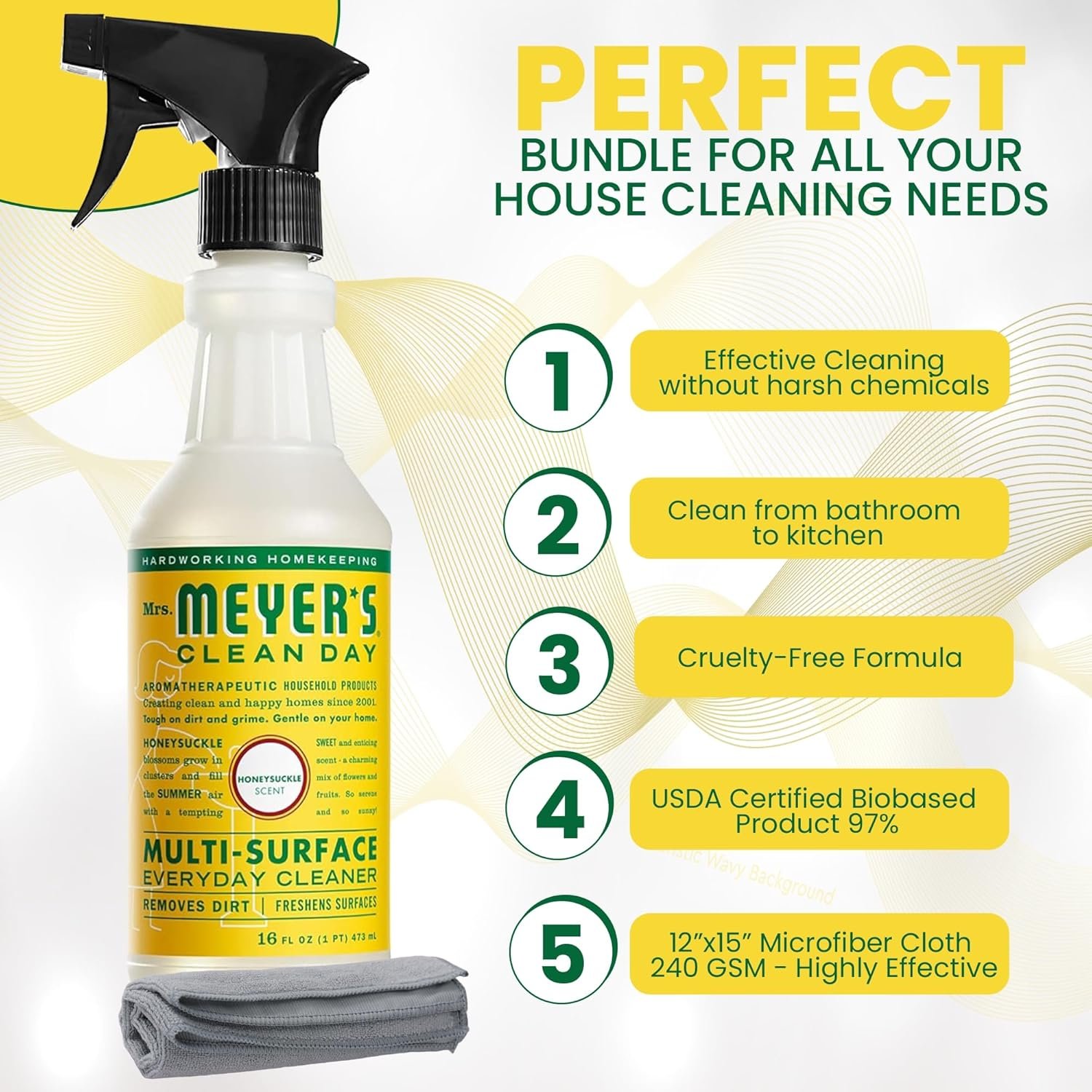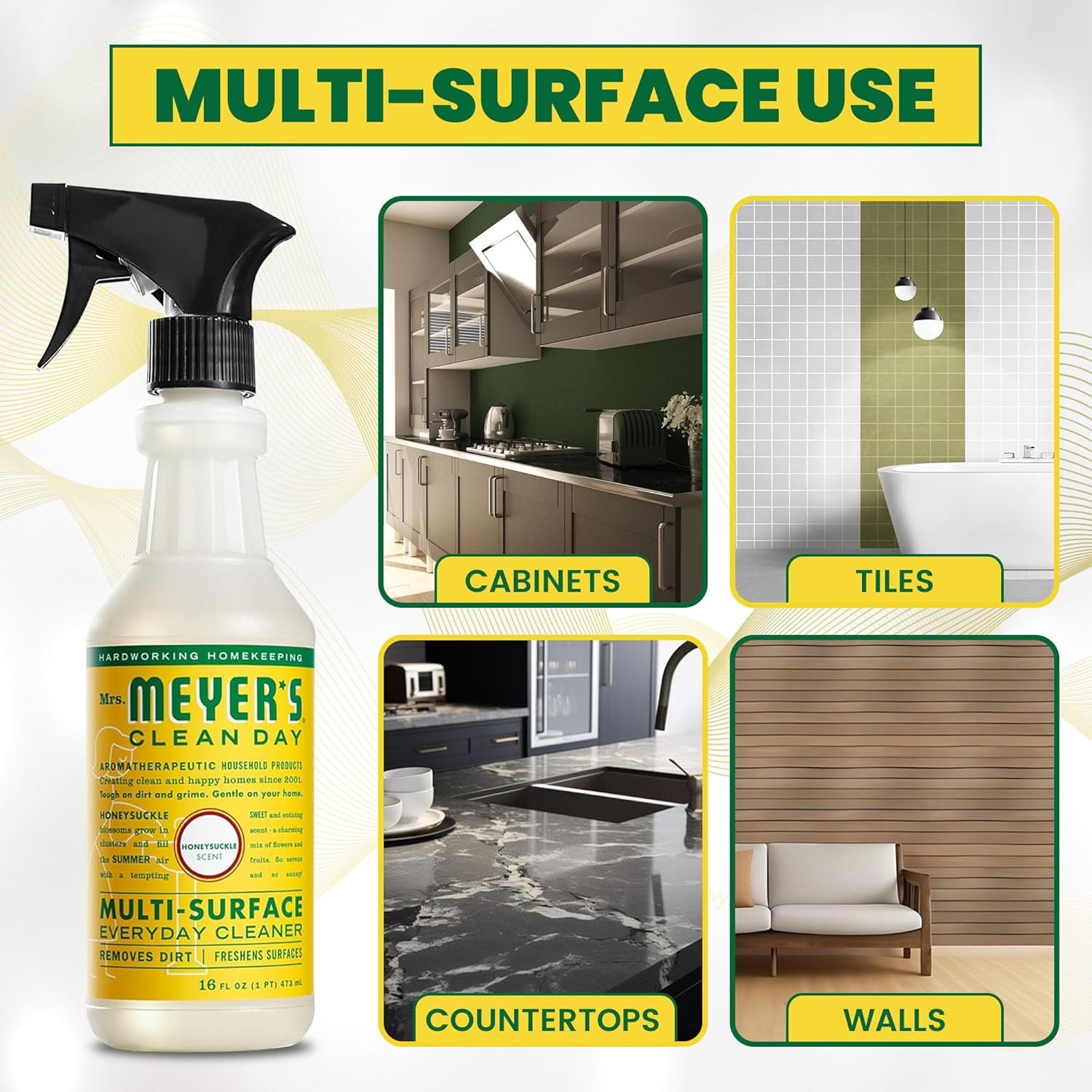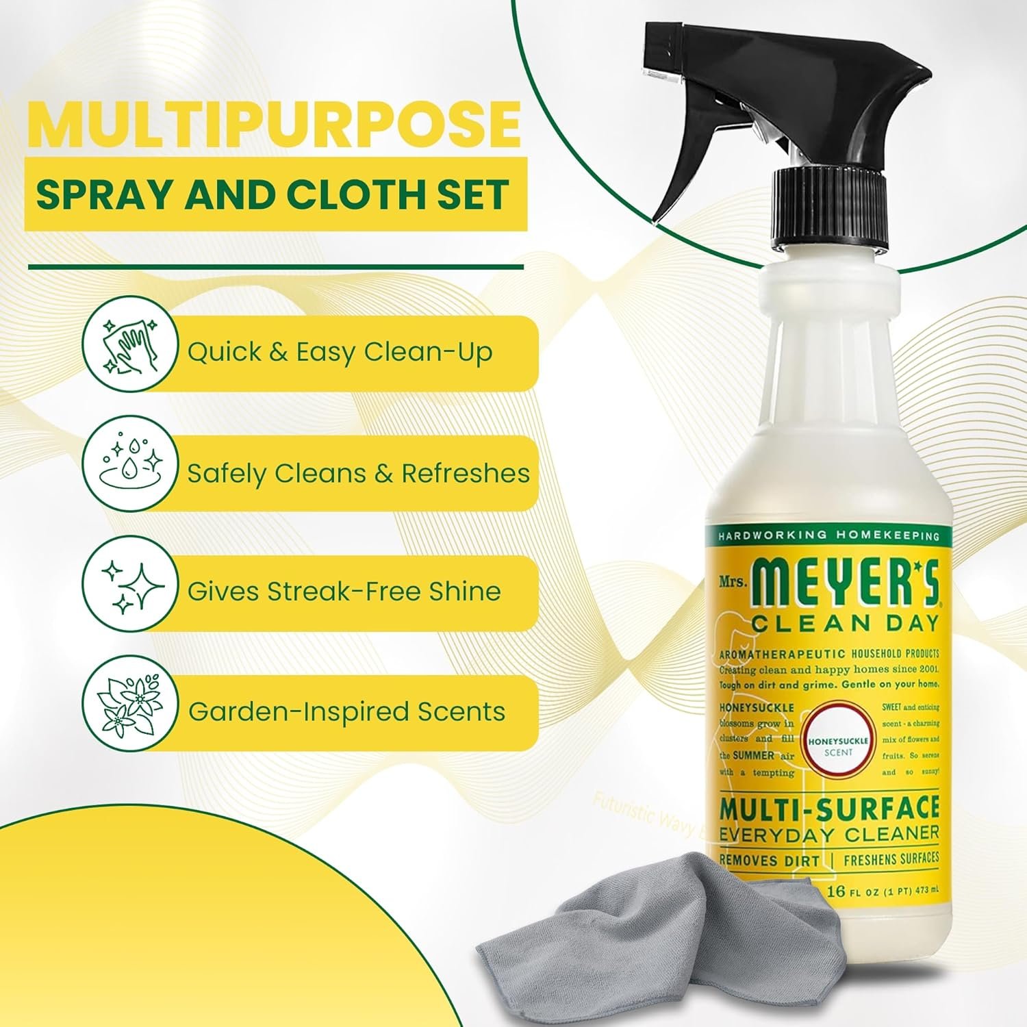 Cleaning Essentials: Quick and easy multi-surface spray removes stuck-on dirt from nonporous surfaces throughout the house and leaves a fresh, garden-inspired scent. Our bundle made for Mrs Meyers honeysuckle multisurface cleaner is ideal for household cleaning, as it gently cleans and removes dirt while protecting your furniture.
