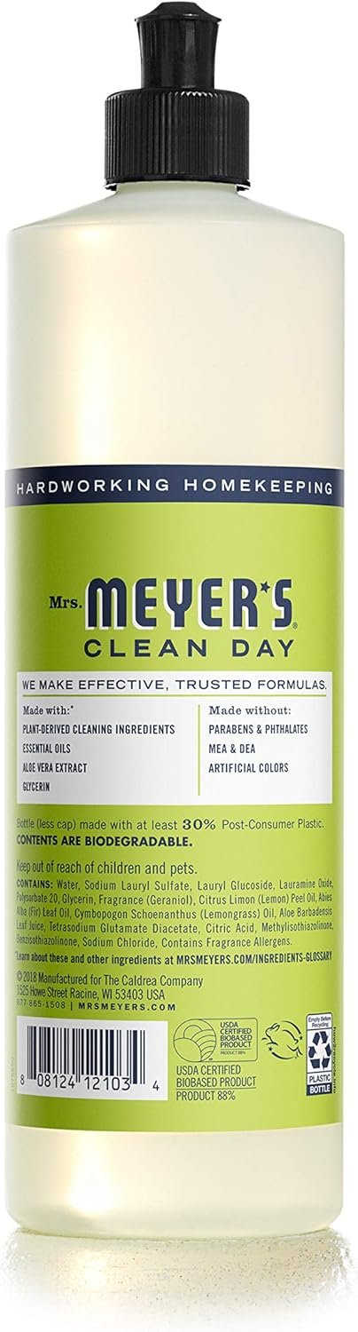 Mrs. Meyer’s Clean Day liquid dish soaps are specifically made to make grease disappear, while also providing a special, singular scent for your home. Lemon Verbena dishwashing liquid has a light, refreshingly mild citrus scent. This tender herb blossoms in early summer and smells bright and new through and through. Our biodegradable formula dish liquid cuts through grease and is designed for hand washing dishes, pots, and pans. The liquid dish detergent contains plant-derived cleaning agents and other thoughtfully chosen ingredients that make dishes clean and bright. It’s a Dish Soap made without parabens, phthalates, or animal-derived ingredients. And of course, this is a cruelty-free formula product. Also available in other garden-inspired scents and products such as Hand Soap and Multi-Surface Cleaner. Mrs. Meyer’s – Rooted in Goodness.