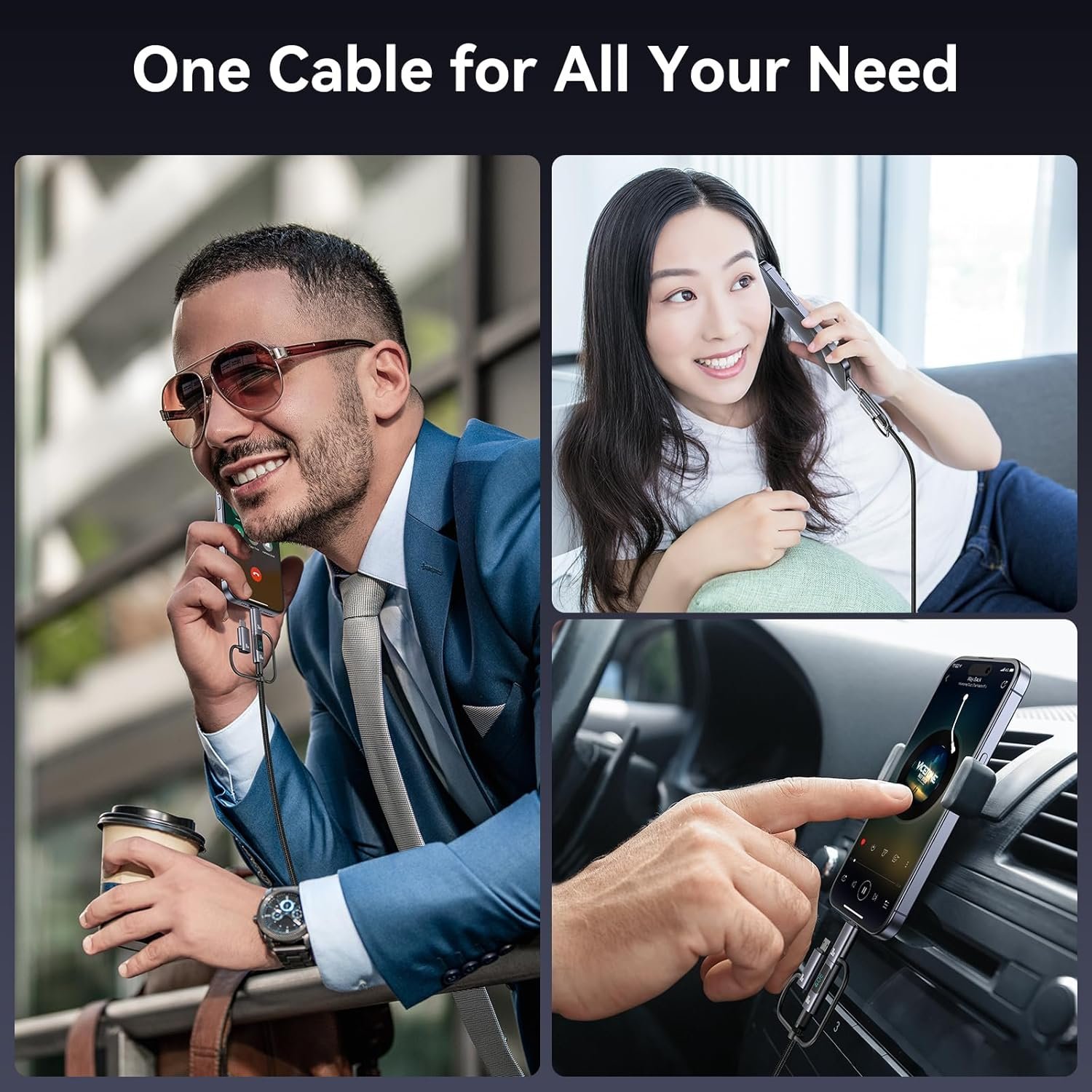 【Multi functional 6-in-1 design 】This 6 in 1 USB charging cable is designed to simplify charging settings. Convenient for travel and business trips, a data cable solves the charging needs of data transmission, Android phones, iOS phones, game consoles, Macs, laptops, and more. The multi cable charging cord combines 6 modes in one cable – USB A to C, USB A to L-ight ning, USB A to Micro, USB C to L-ight ning, USB C to micro, and USB C to USB C