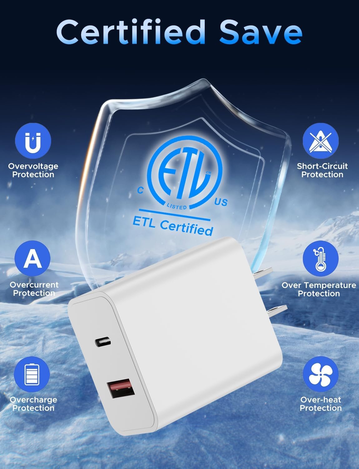 🔹【PD20W USB C/A Charger Included】Suitable for the U.S. and the World electrical standards, It has ETL(US),FCC,CE,ROHS,certificated, The shell is made of high quality ABS material, heat resistance and low temperature resistance, chemical resistance and excellent electrical properties. The Charger Internal High Quality Chips Protect Your Devices from over Heating, Short-circuiting and over Charging