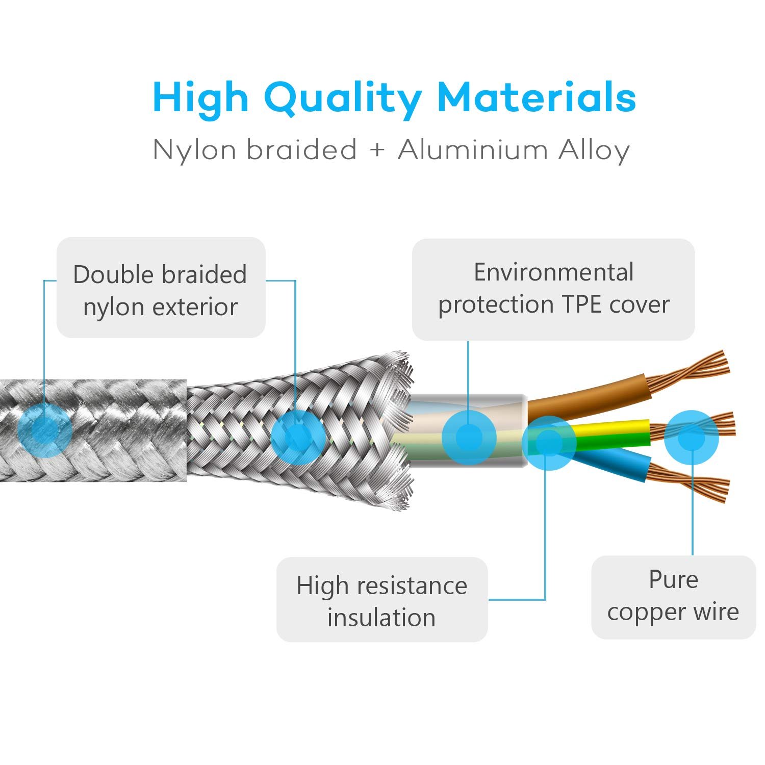 The external cable wrapped with tough nylon braided wire,Strong and durable so not to be broken.