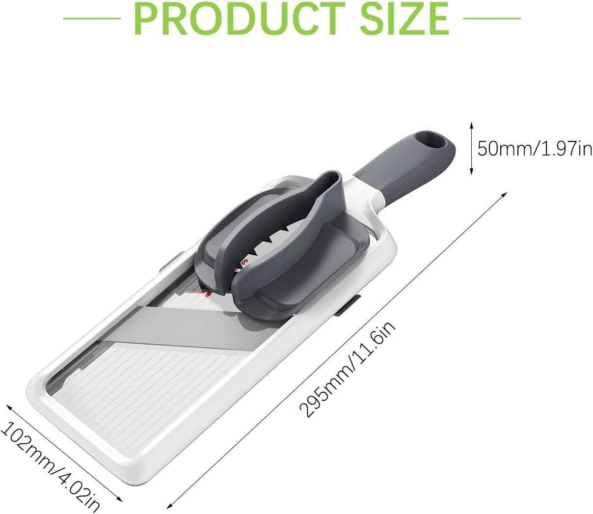 【Three Thickness Settings】】The adjustable mandoline Slicer has 3 thickness settings(1mm, 2.5mm,4mm), thickness selector tailors the slicing according to your needs. One device for multiple purposes