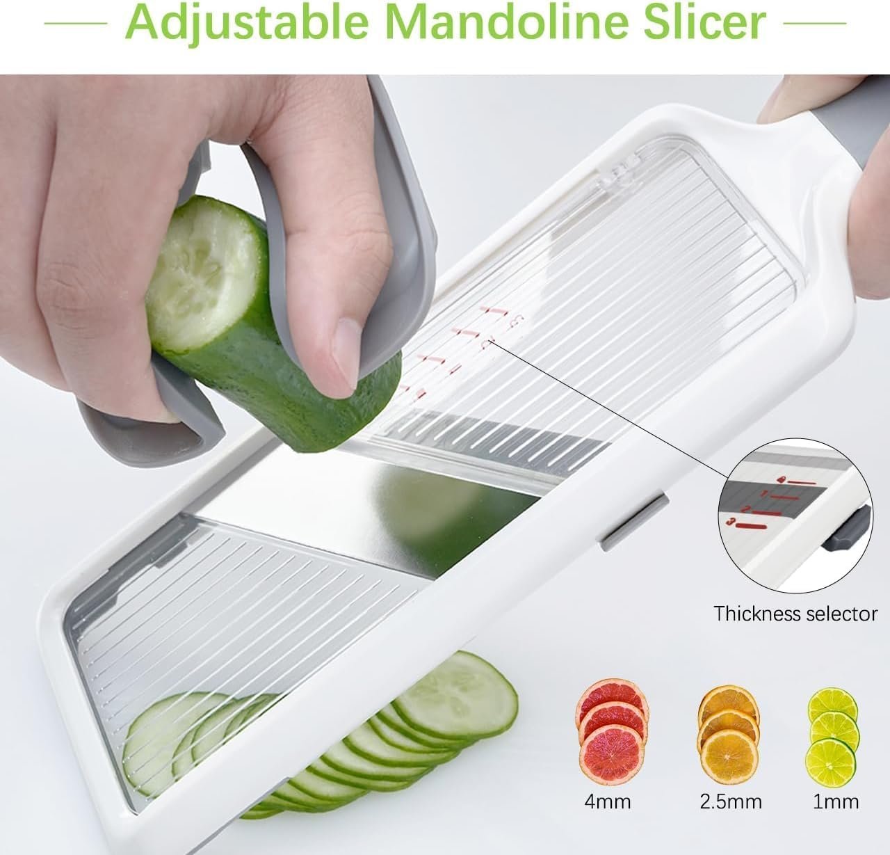 【Time-Saving Effciency】Streamline your meal preparation with the time-saving efficiency of our mandoline slicer. It helps you create even slices of fruits and vegetables quickly and easily, suitable for carrots, onions, zucchini, tomatoes, kiwi, lemons,or apples, you can cut them all with one swipe. Spend less time chopping and more time enjoying your delicious creations
