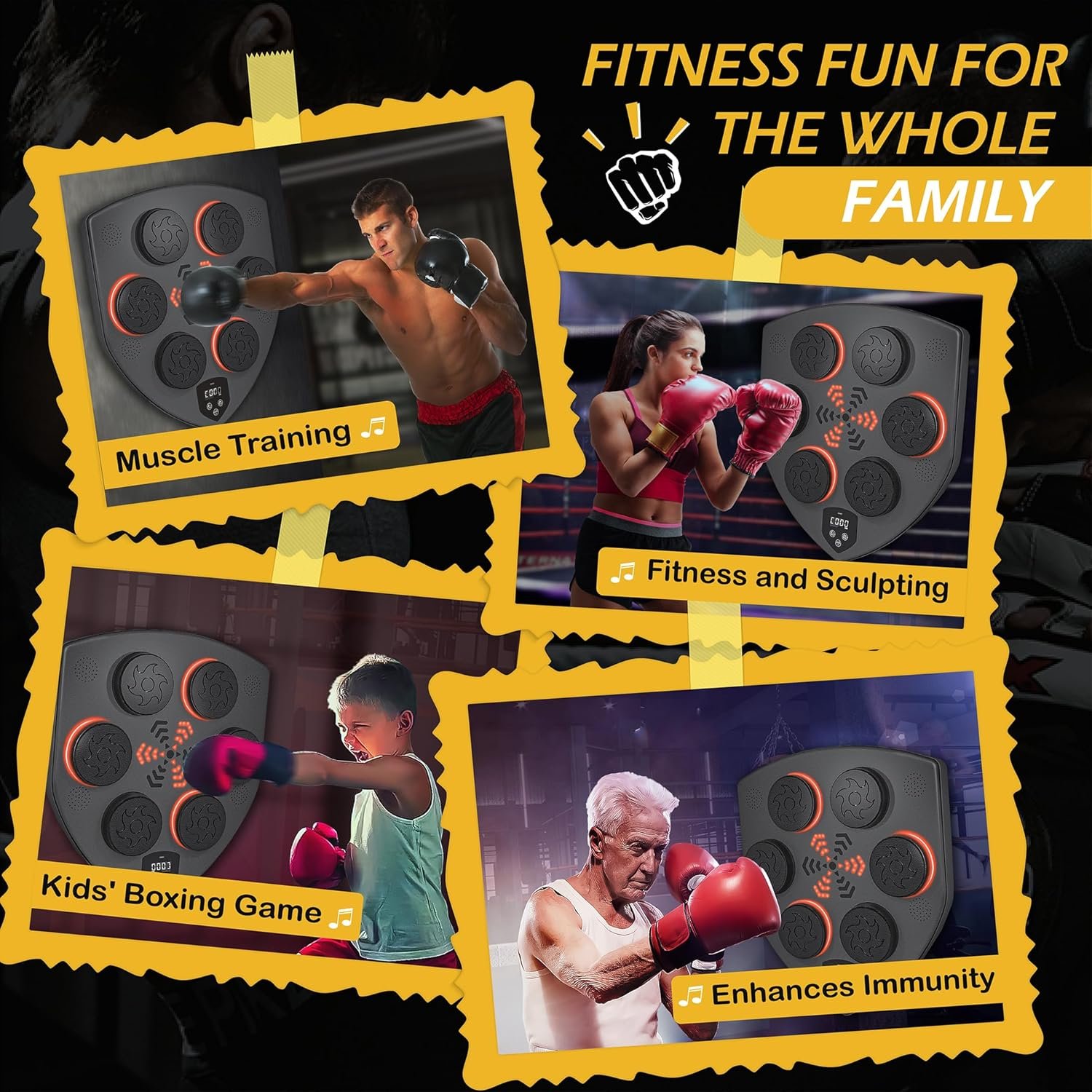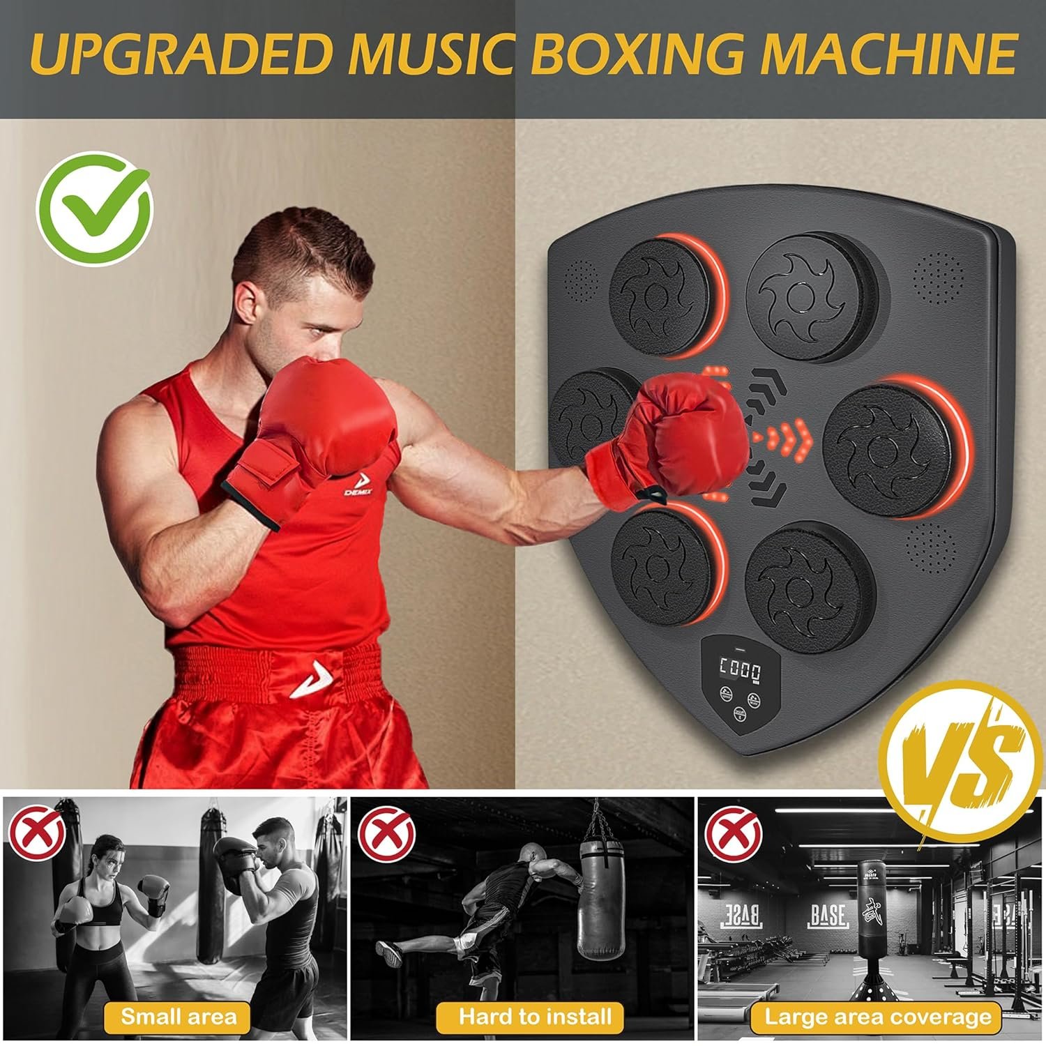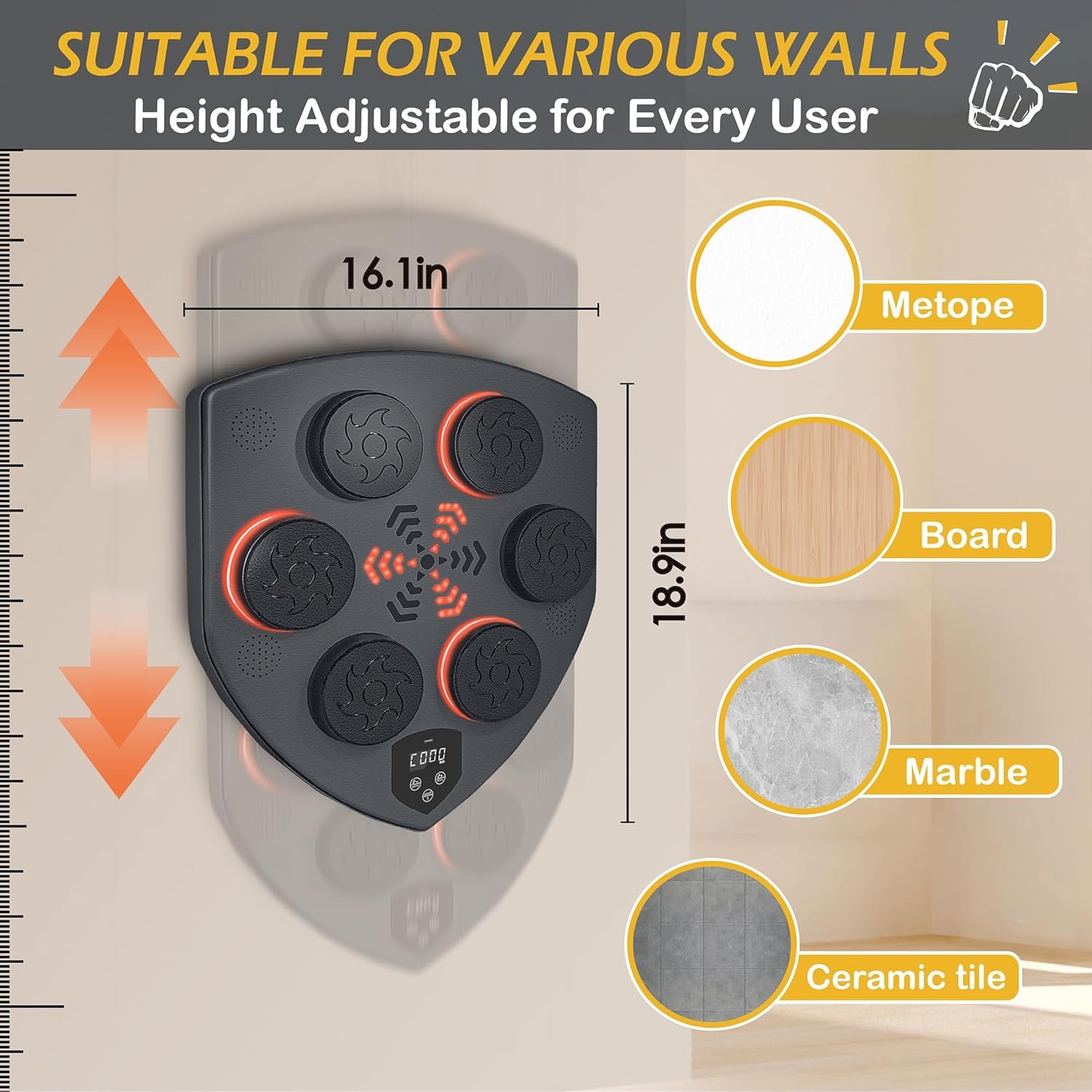 Easy to Install: Only a few minutes, this smart musical boxing machine can be installed to the smooth wall with the included Velcro strips. No need to punch holes in the wall, A detailed instruction manual is included for your reference. According to personal preferences to adjust the height, you can work out at home at any time instead of the gym. This music wall punching machine is perfect for home workouts and skill improvement.