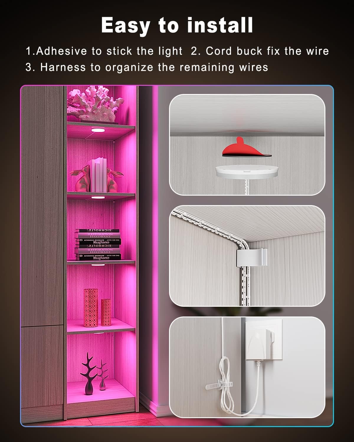 Easy to Install:Tool free and easy to stick up, no damage to your cabinet or furniture. (If the backplane is closed, will need punch holes to route the wires.)