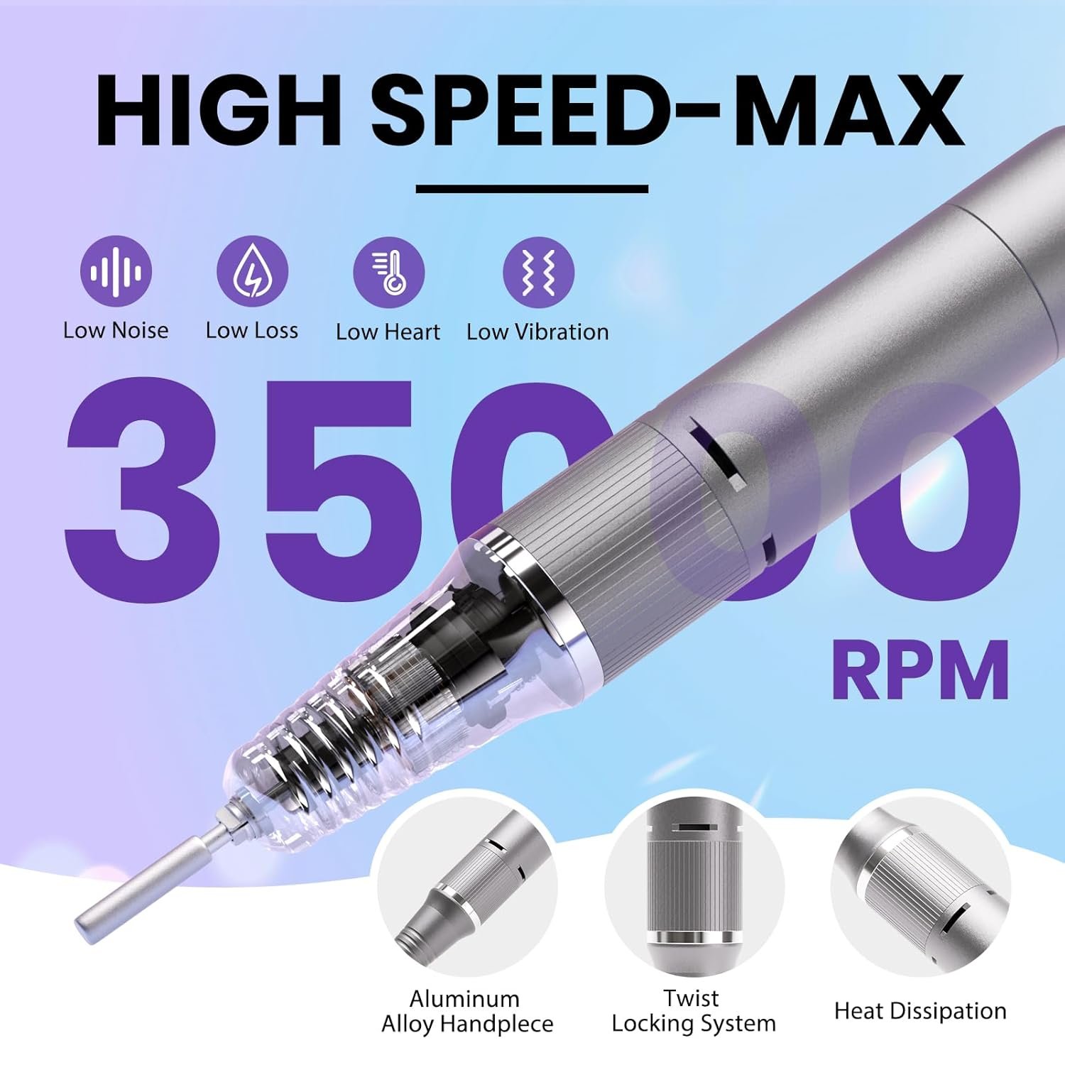 Enhanced Performance and Comfort: Upgraded heat sink technology ensures nail drill optimal performance without overheating, while the low noise and vibration design offer a comfortable and relaxing nail care experience.