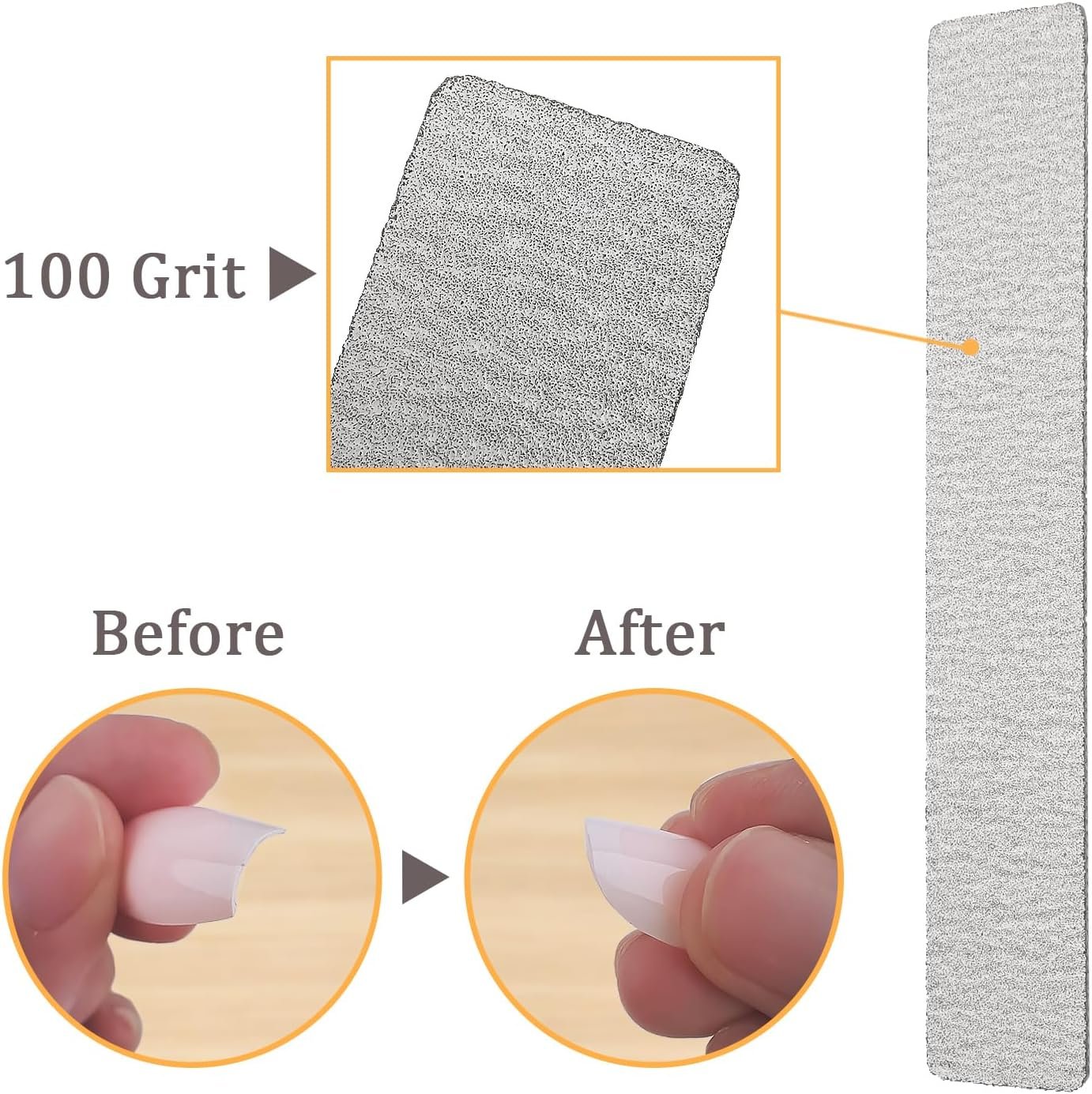 100grit represents the coarser side, and the picture shows the nail filing effect on a real person’s nails.